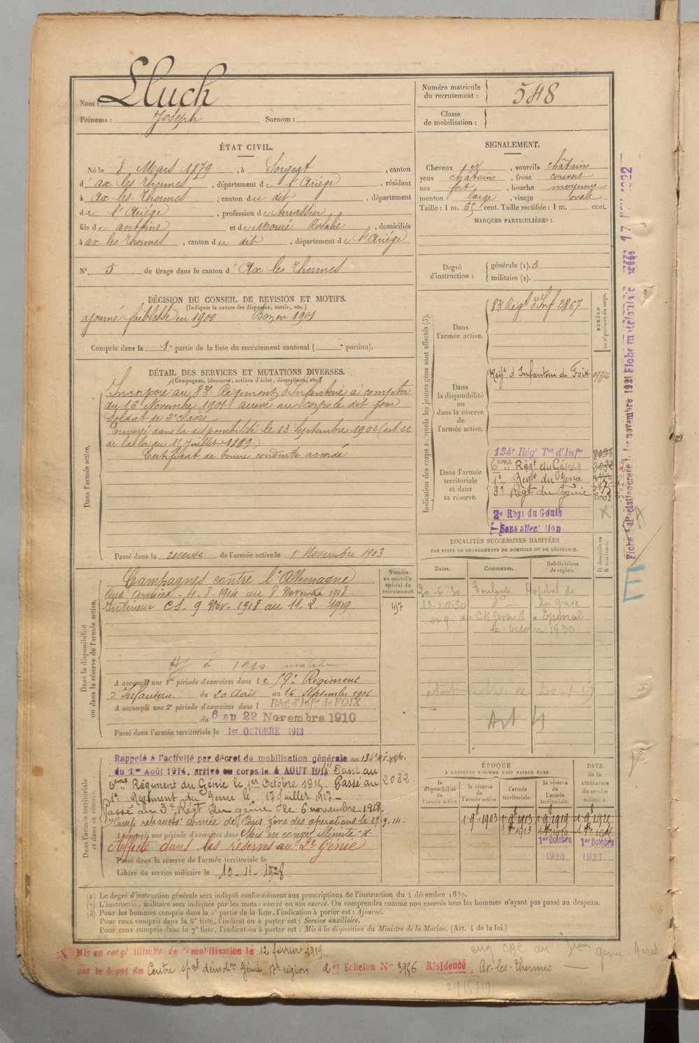| Lluch | Joseph | FOIX | 1 R 457 | 1899 | Sorgeat | Ax-les-Thermes | 548 |