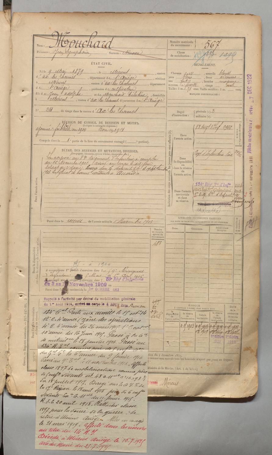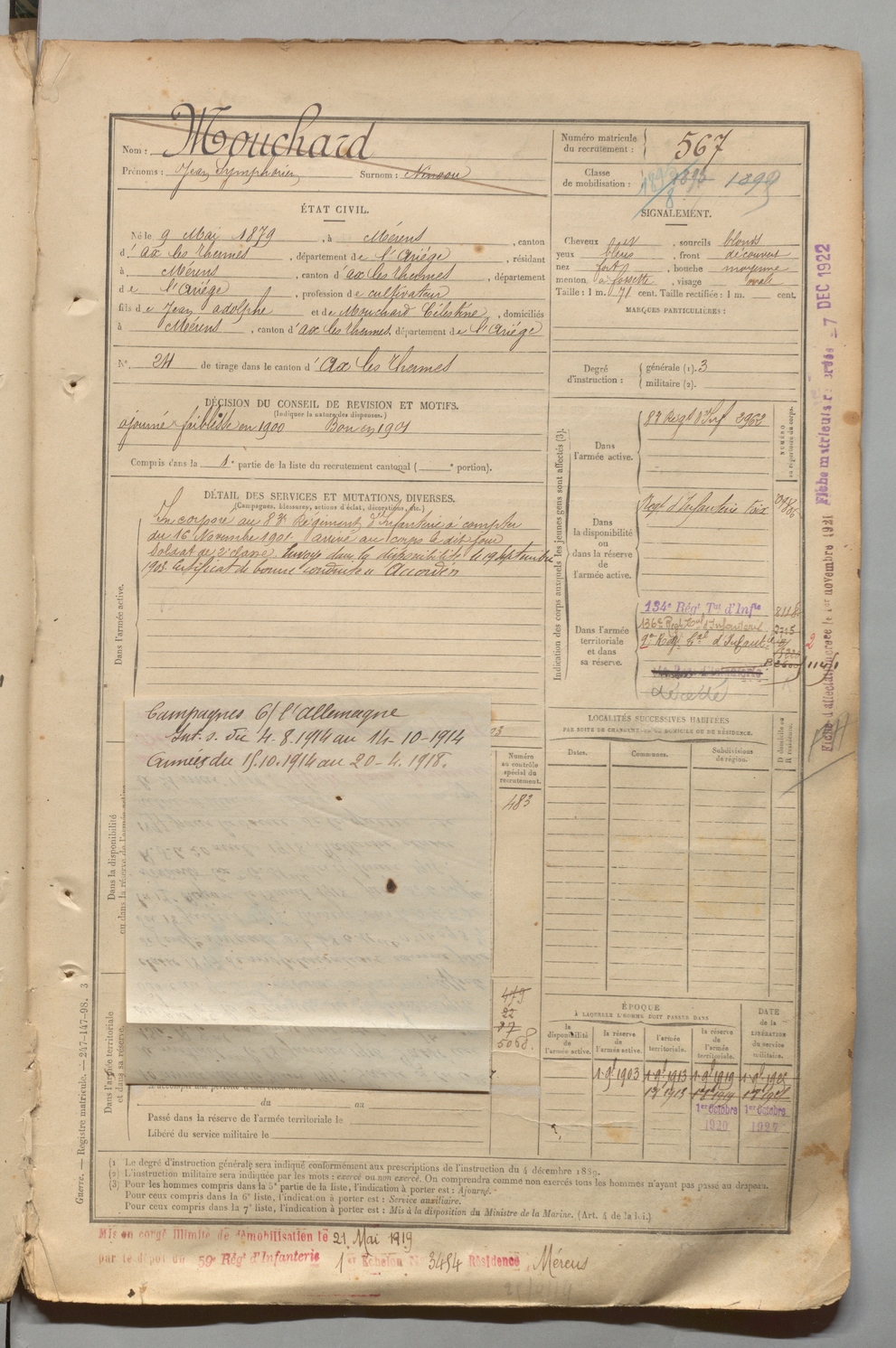 | Mouchard | Jean Symphorien dit Ninou | FOIX | 1 R 457 | 1899 | Mérens-les-Vals | Mérens-les-Vals | 567 |