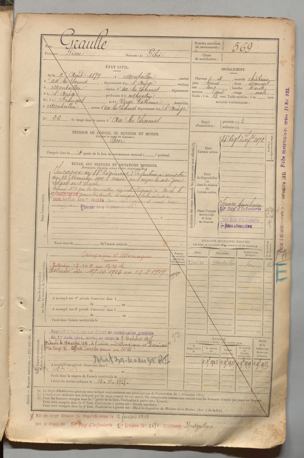 | Graulle | Pierre dit Pébré | FOIX | 1 R 457 | 1899 | Montaillou | Montaillou | 569 |