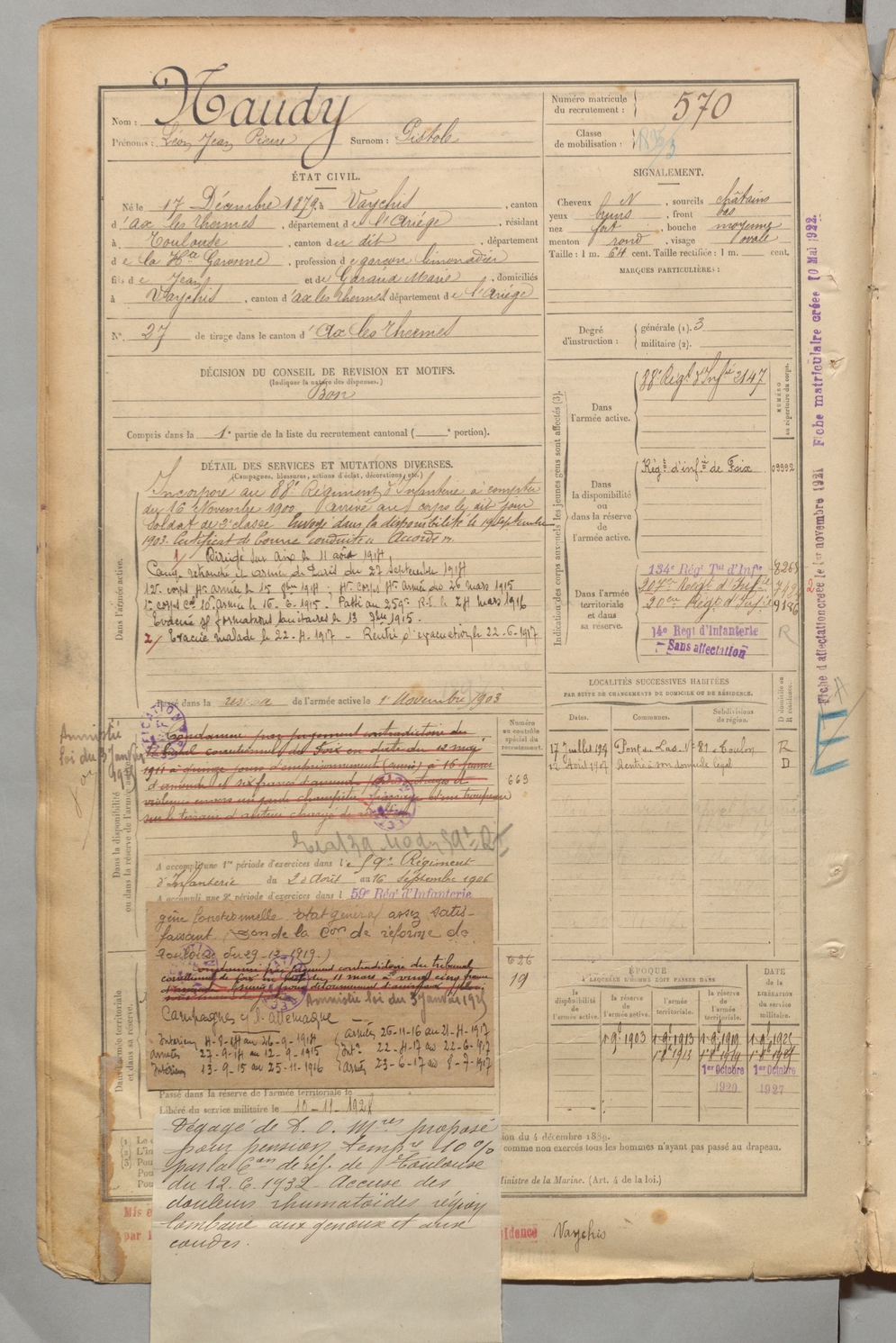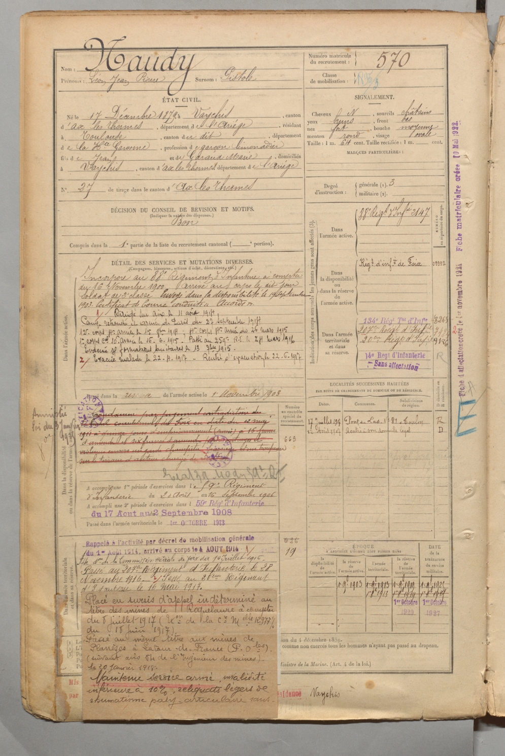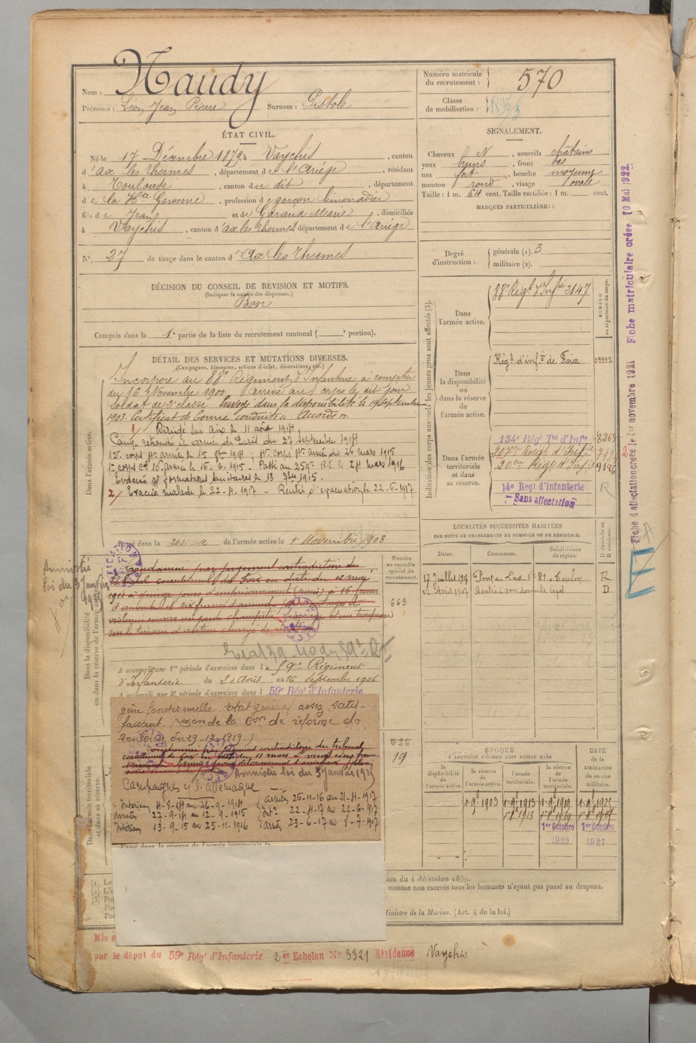 | Naudy | Léon Jean Pierre dit Pistole | FOIX | 1 R 457 | 1899 | Vaychis | Toulouse | 570 |