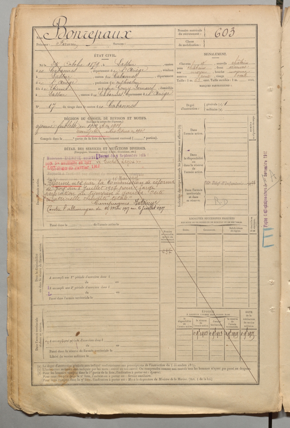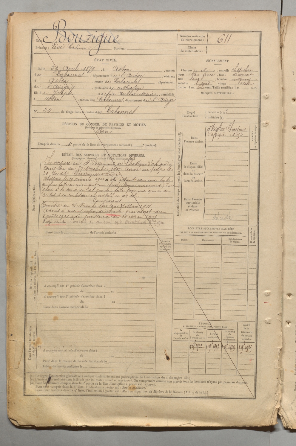 | Bonrepaux | Firmin | FOIX | 1 R 457 | 1899 | Lassur | Lassur | 603 |