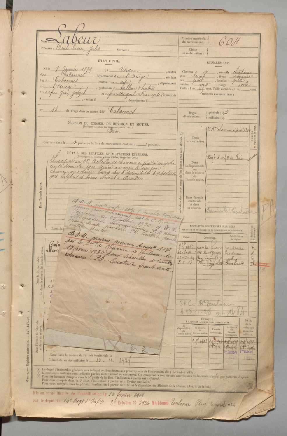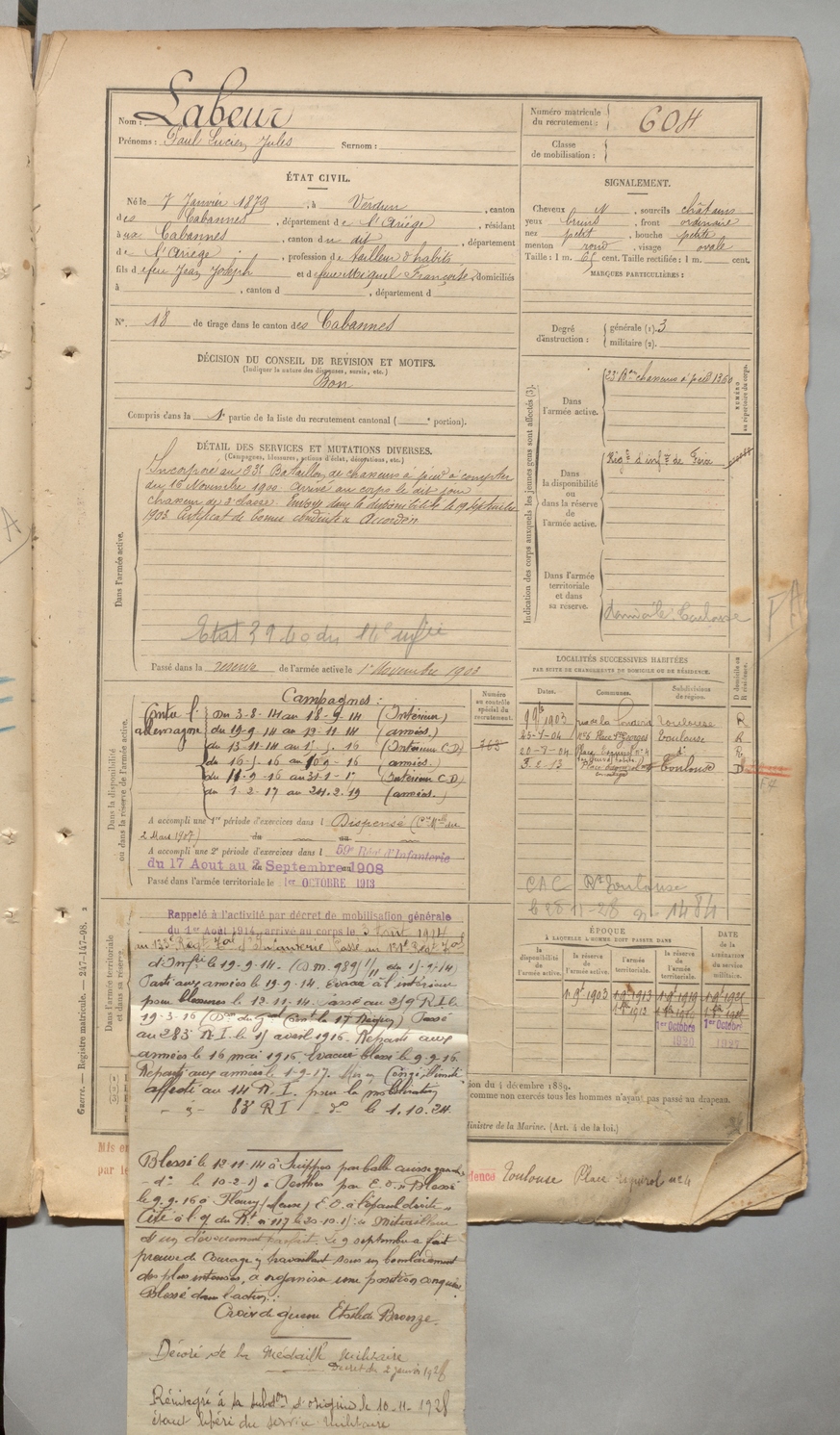 | Labeur | Paul Lucien Jules | FOIX | 1 R 457 | 1899 | Verdun | Cabannes (Les) | 604 |