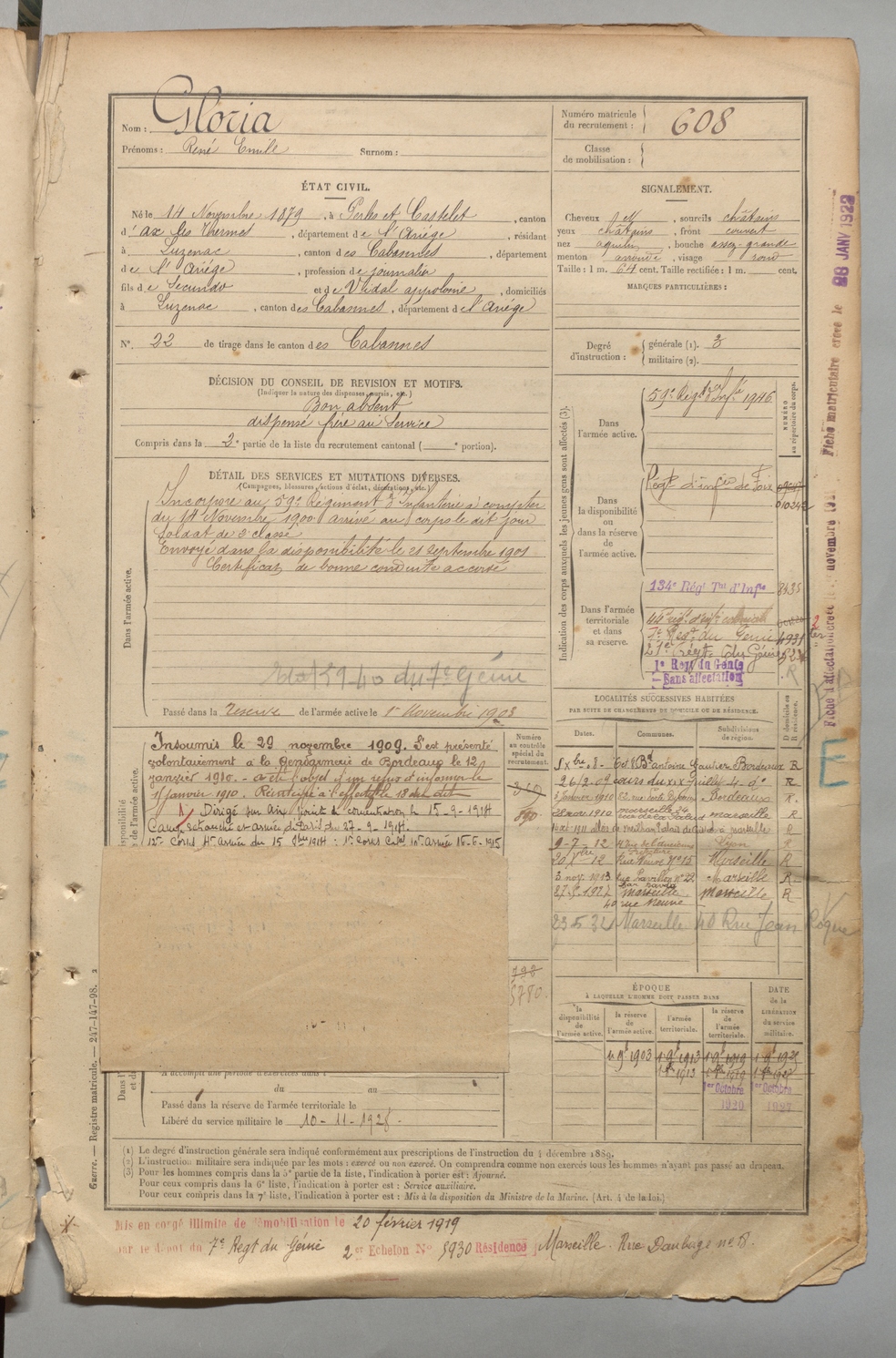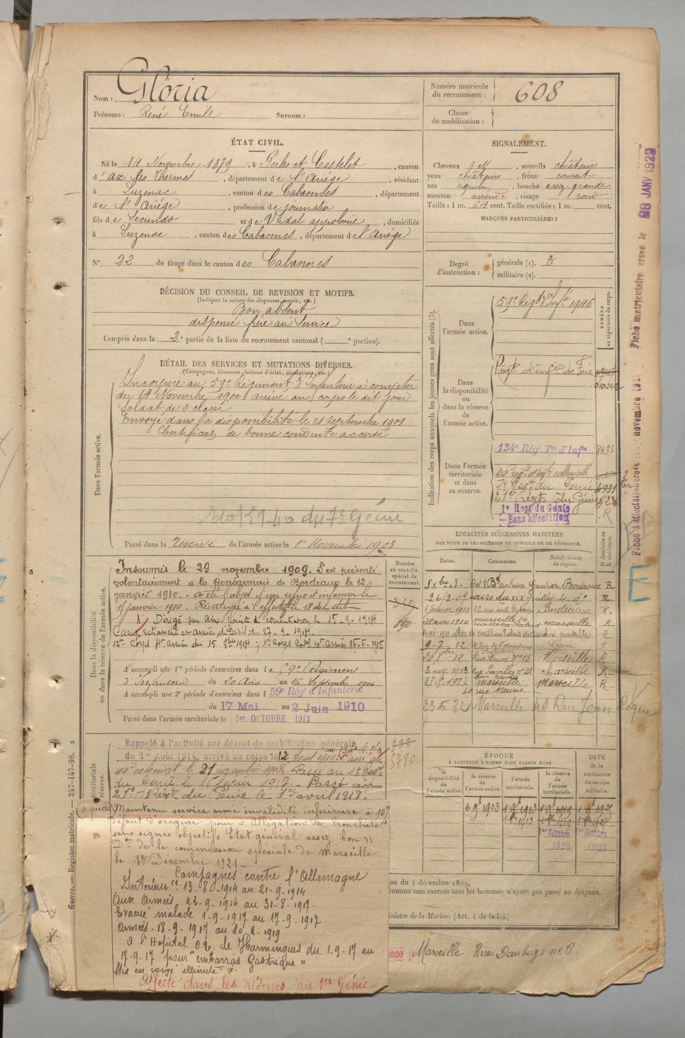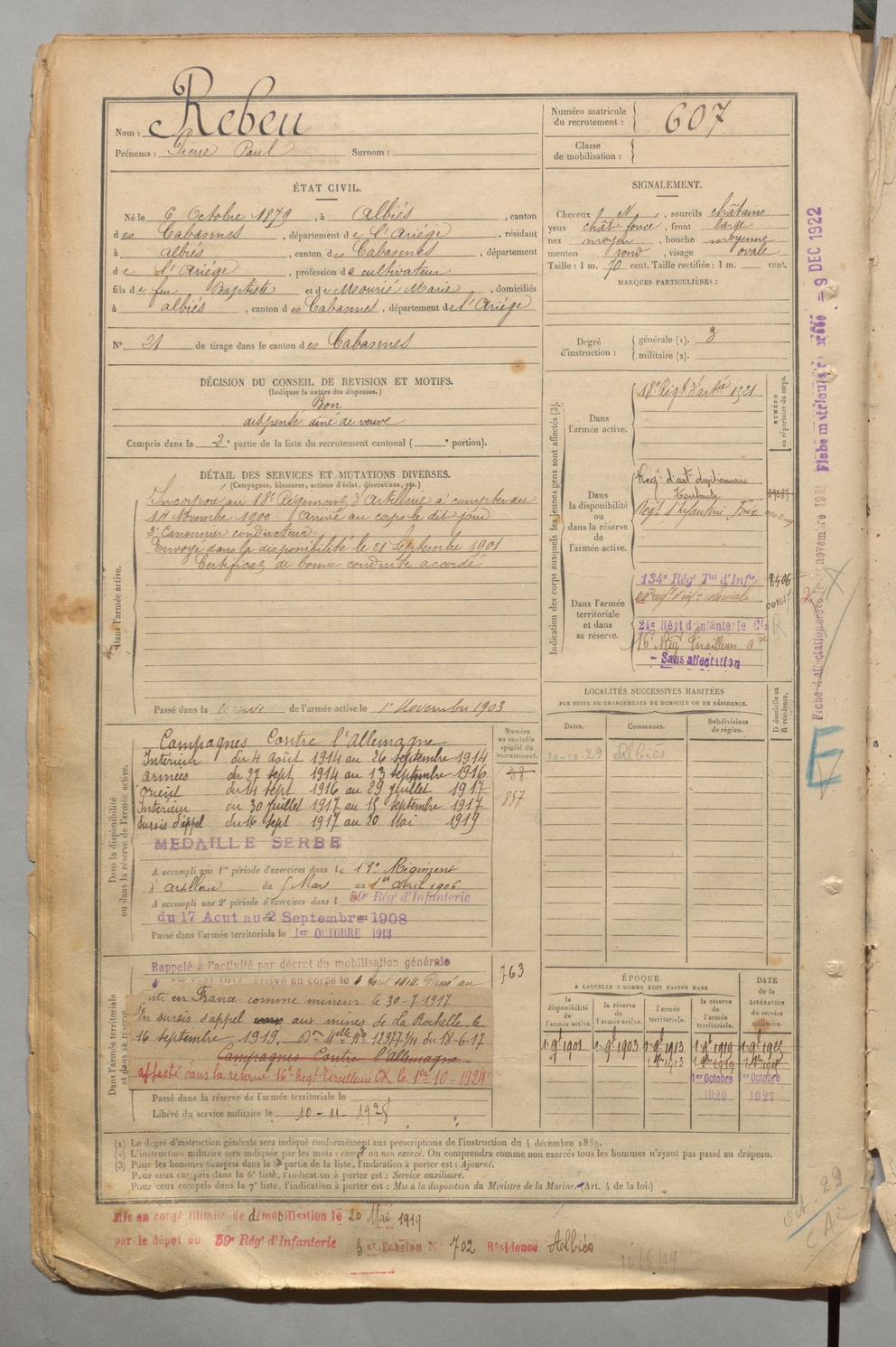 | Sarda | Julien Lucien | FOIX | 1 R 457 | 1899 | Axiat | Bordeaux | 606 |