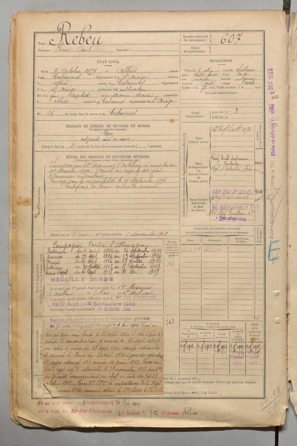 | Rebeu | Pierre Paul | FOIX | 1 R 457 | 1899 | Albiès | Albiès | 607 |