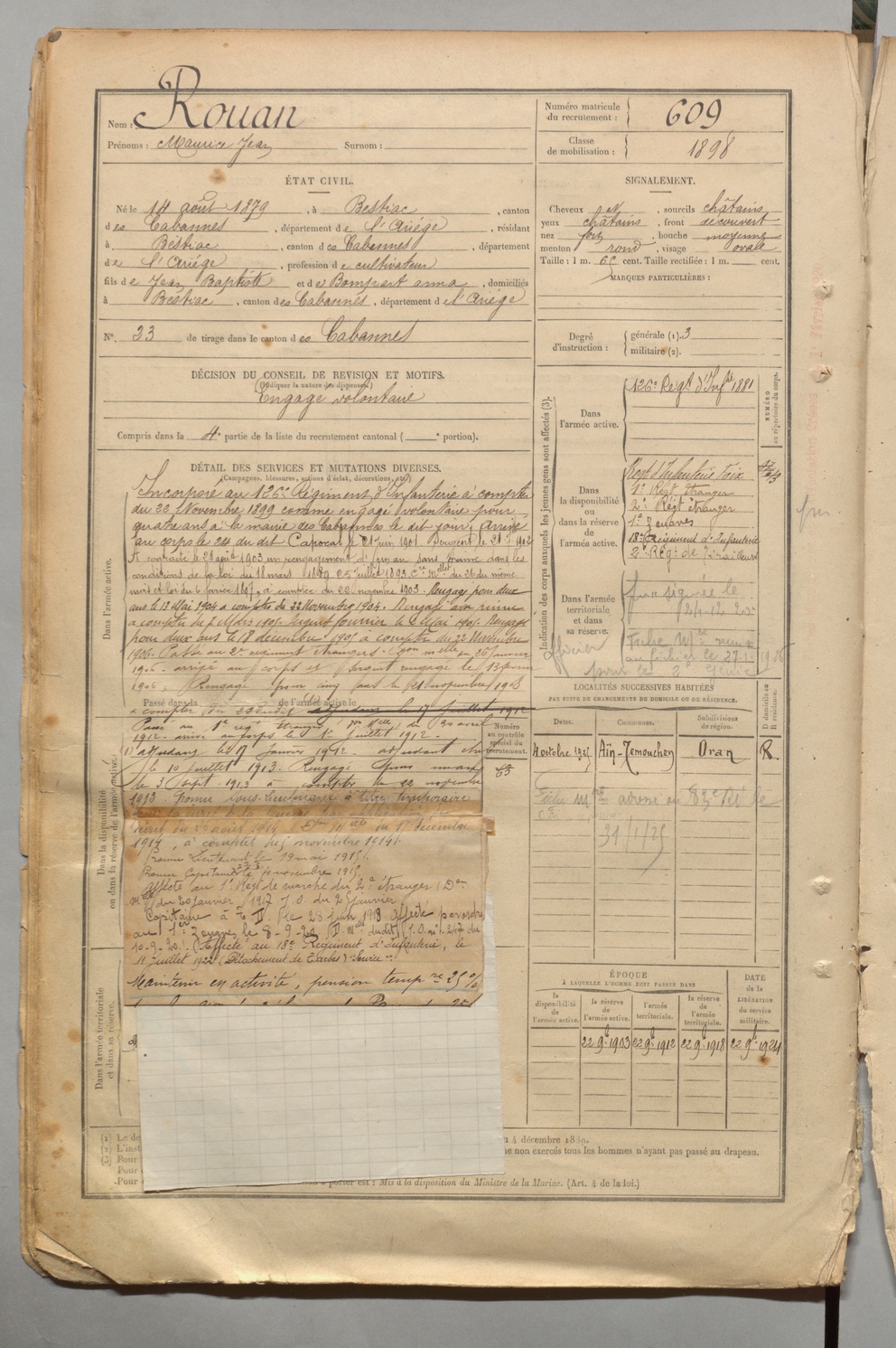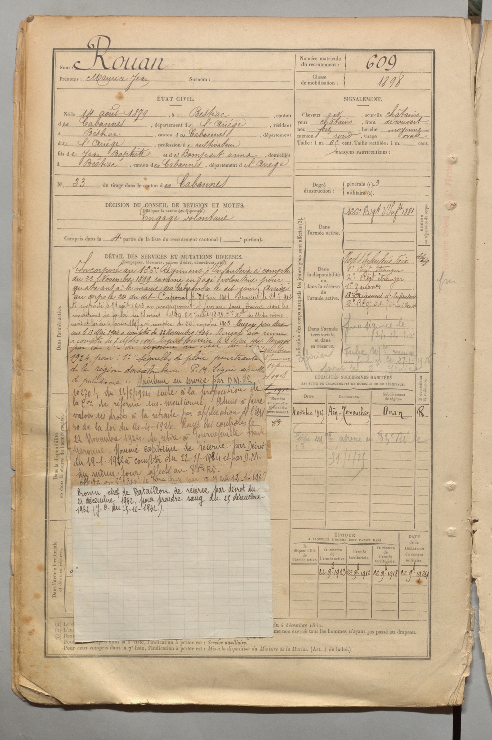 | Rouan | Maurice Jean | FOIX | 1 R 457 | 1899 | Bestiac | Bestiac | 609 |
