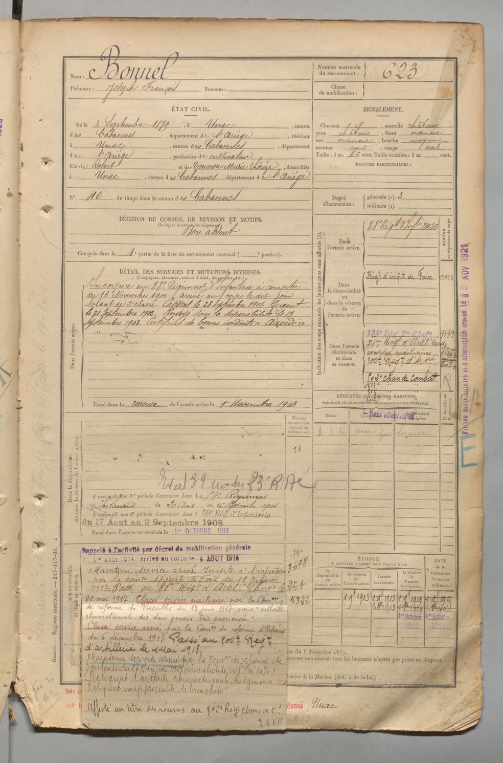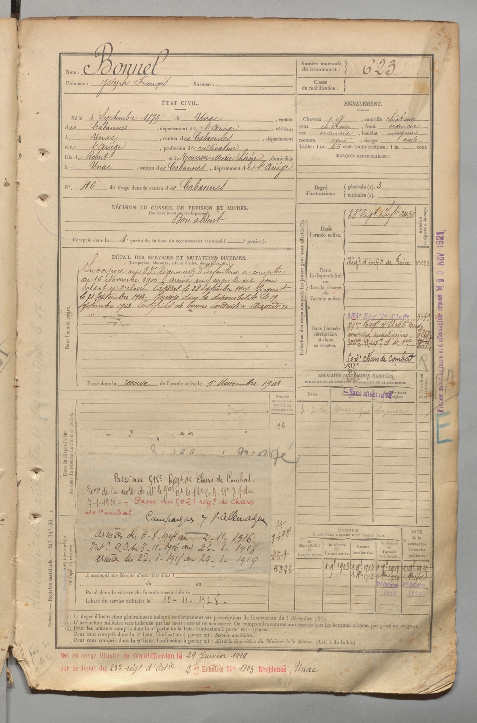 | Bonnel | Joseph François | FOIX | 1 R 457 | 1899 | Unac | Unac | 623 |