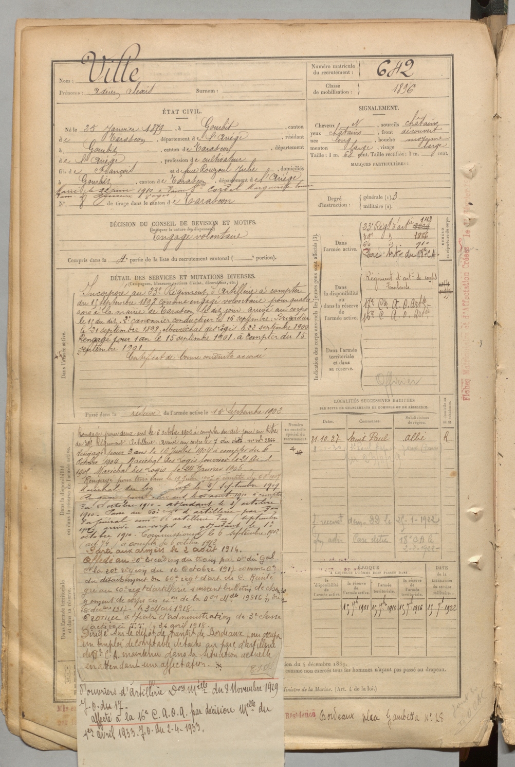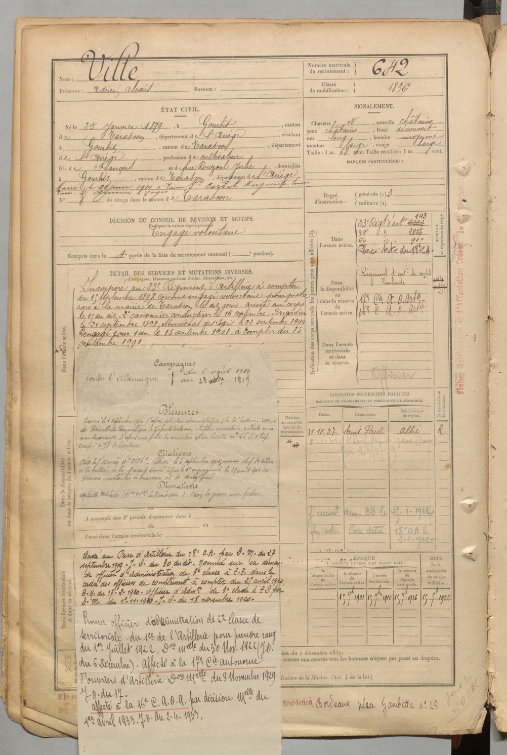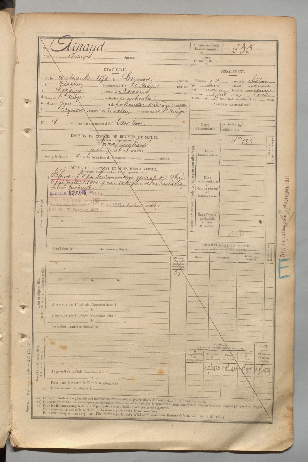 | Ville | Adrien Alexis | FOIX | 1 R 457 | 1899 | Gourbit | Gourbit | 642 |