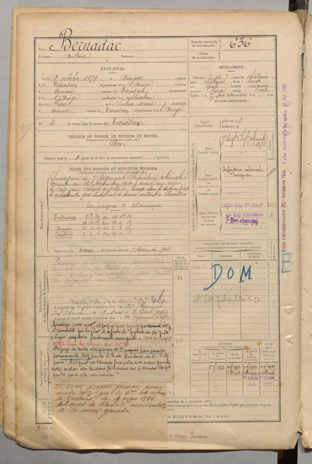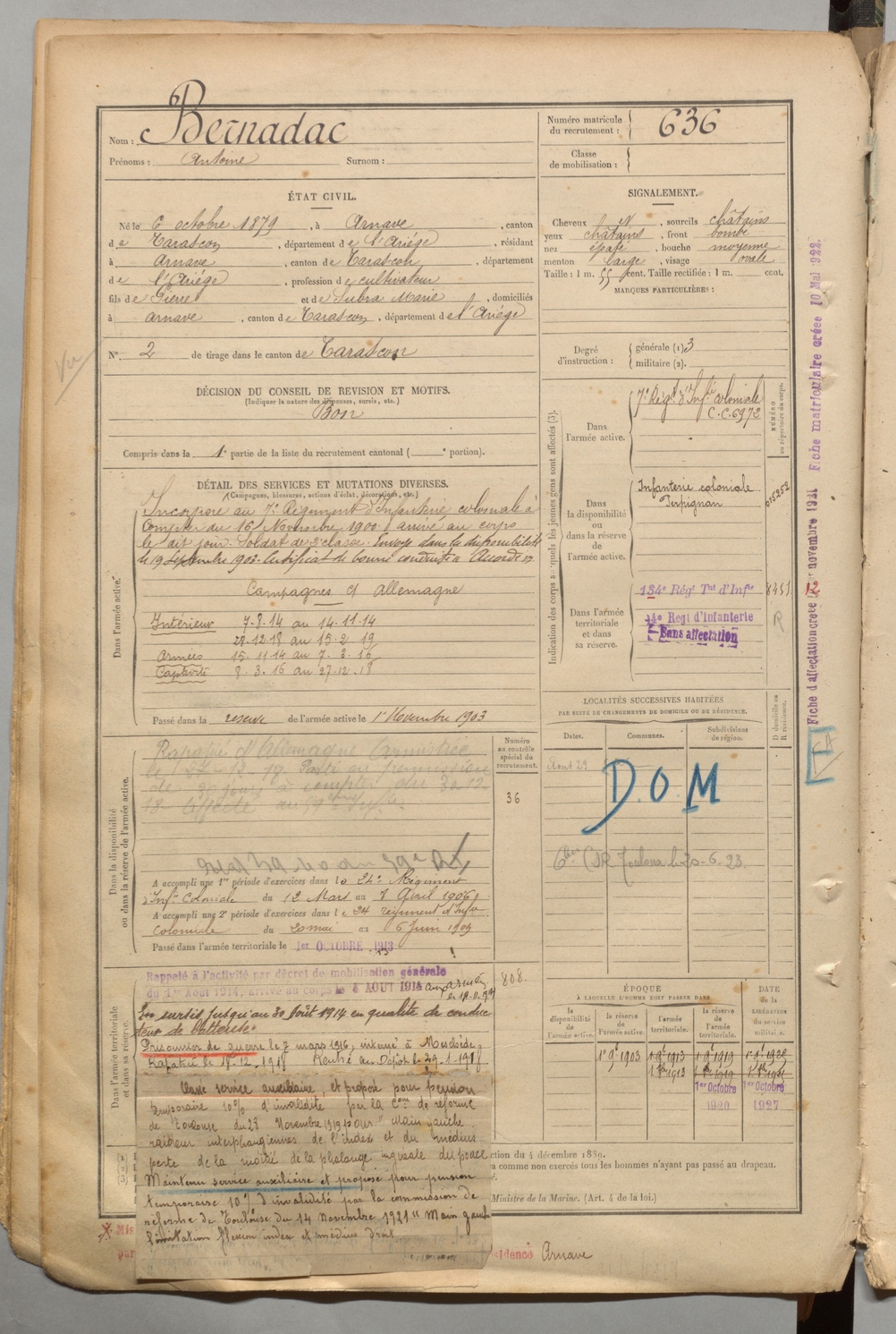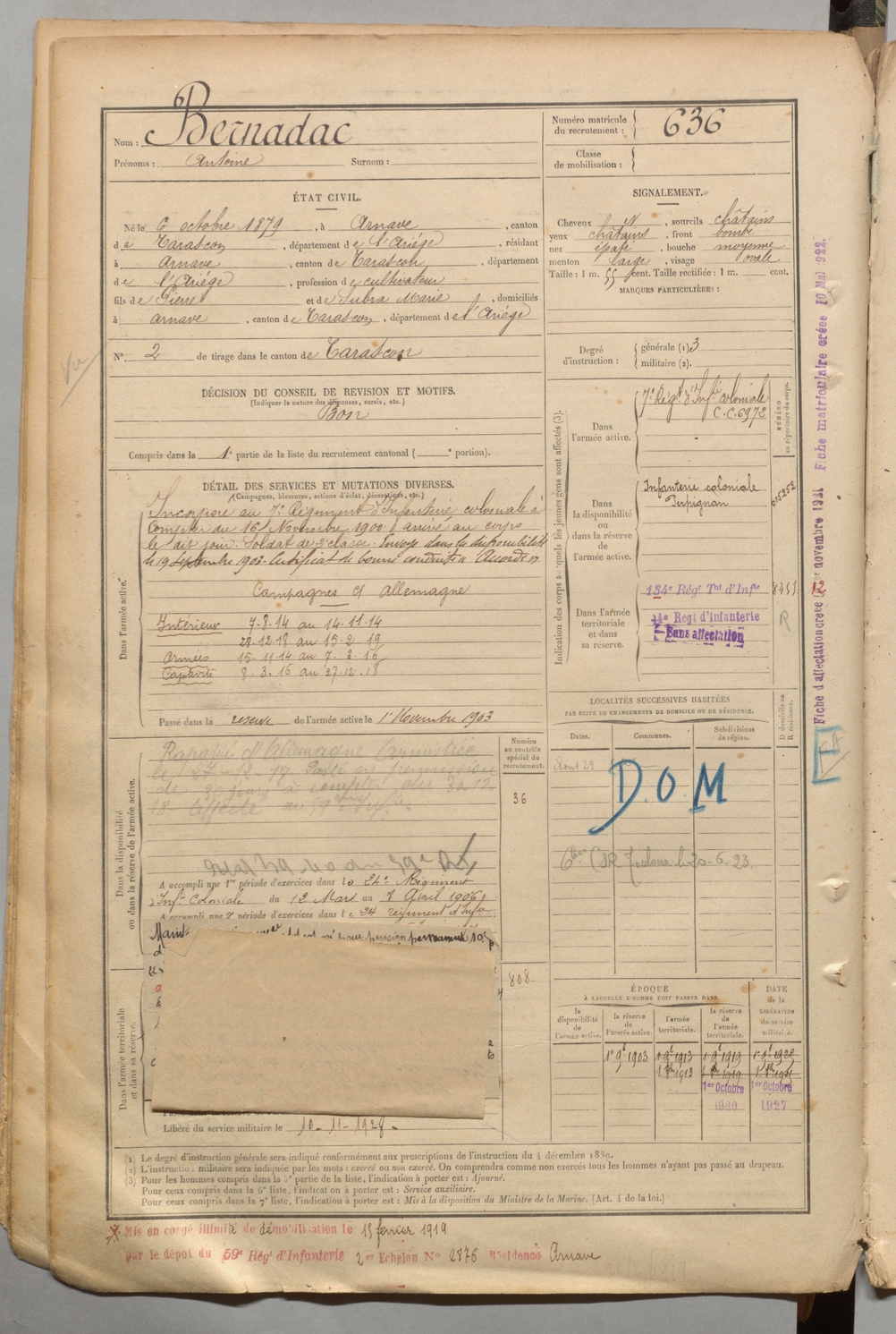 | Bernadac | Antoine | FOIX | 1 R 457 | 1899 | Arnave | Arnave | 636 |
