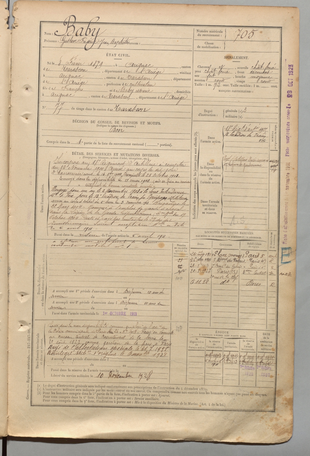 | Baby | Gustave Frédéric Jean Baptiste | FOIX | 1 R 457 | 1899 | Arignac | Arignac | 705 |