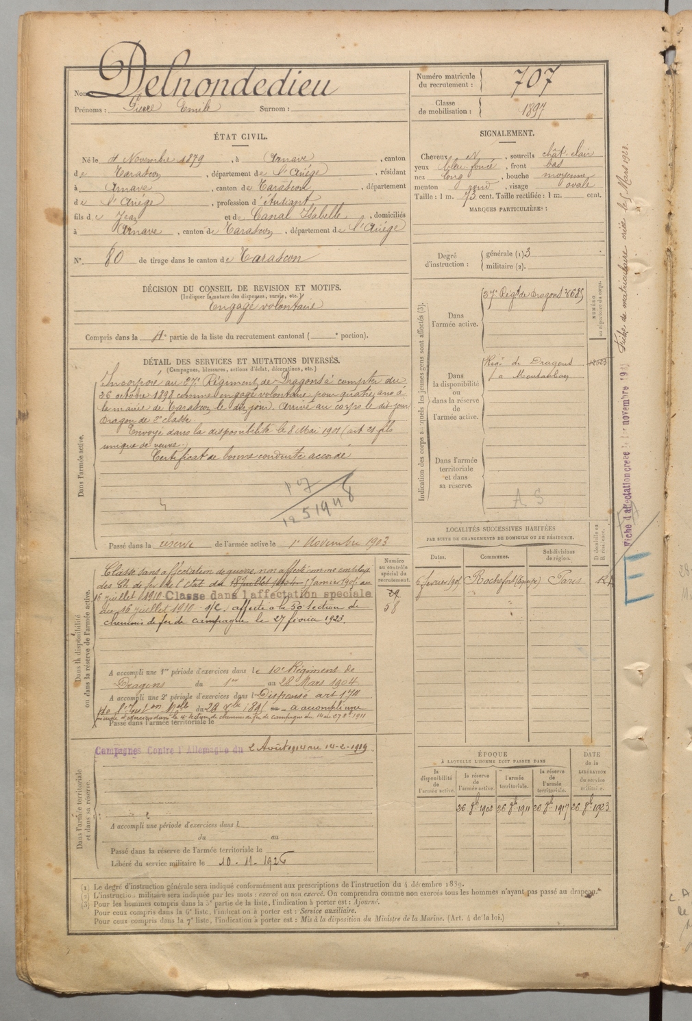 | Delnondedieu | Pierre Emile | FOIX | 1 R 457 | 1899 | Arnave | Arnave | 707 |