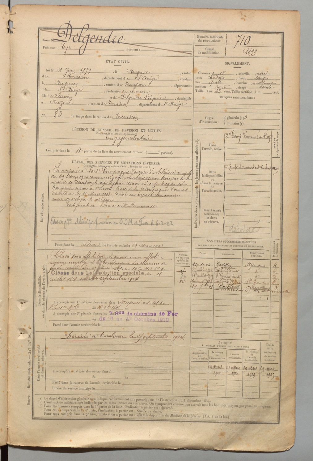 | Delgendre | Cyr | FOIX | 1 R 457 | 1899 | Arignac | Arignac | 710 |