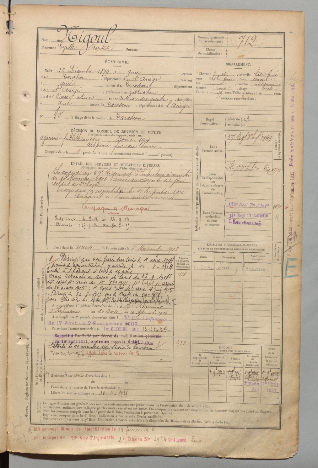 | Nigoul | Cyrille Baptiste | FOIX | 1 R 457 | 1899 | Quié | Quié | 712 |