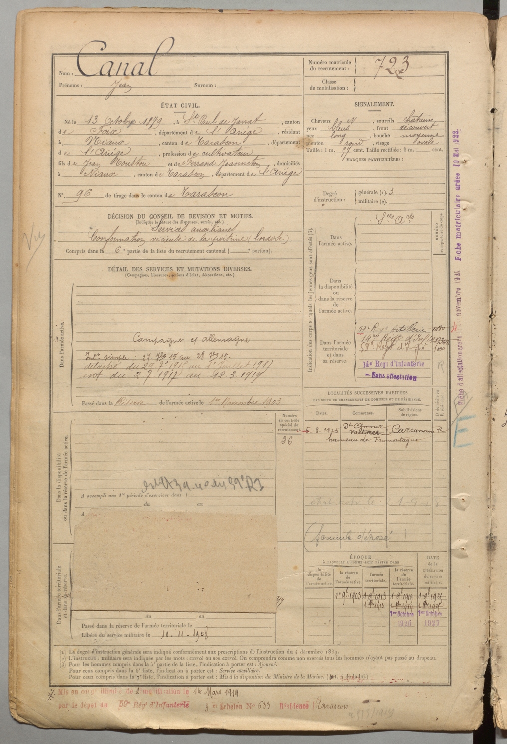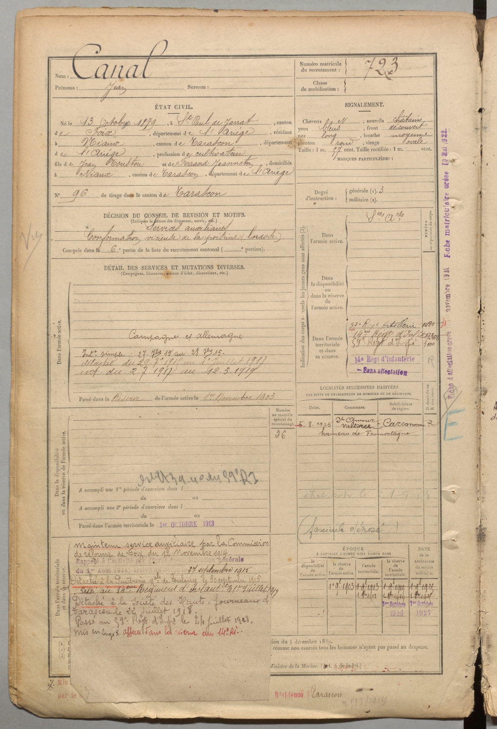 | Canal | Jean | FOIX | 1 R 457 | 1899 | Saint-Paul-de-Jarrat | Niaux | 723 |