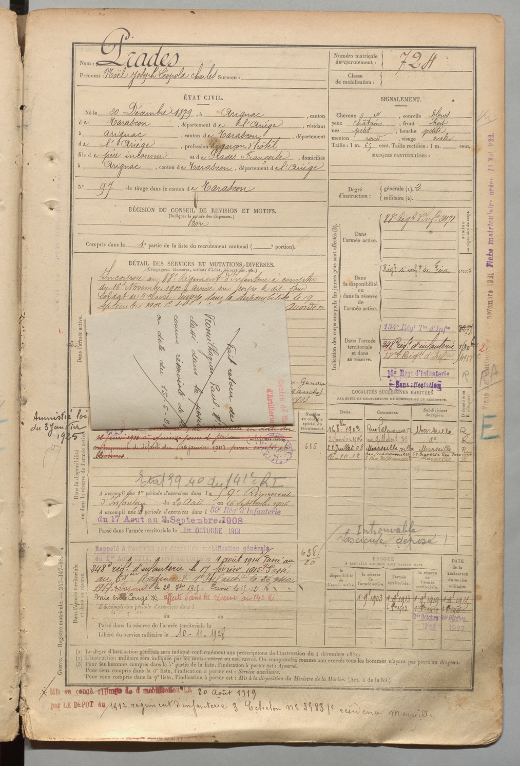 | Prades | Noël Joseph Léopold Charles | FOIX | 1 R 457 | 1899 | Arignac | Arignac | 724 |
