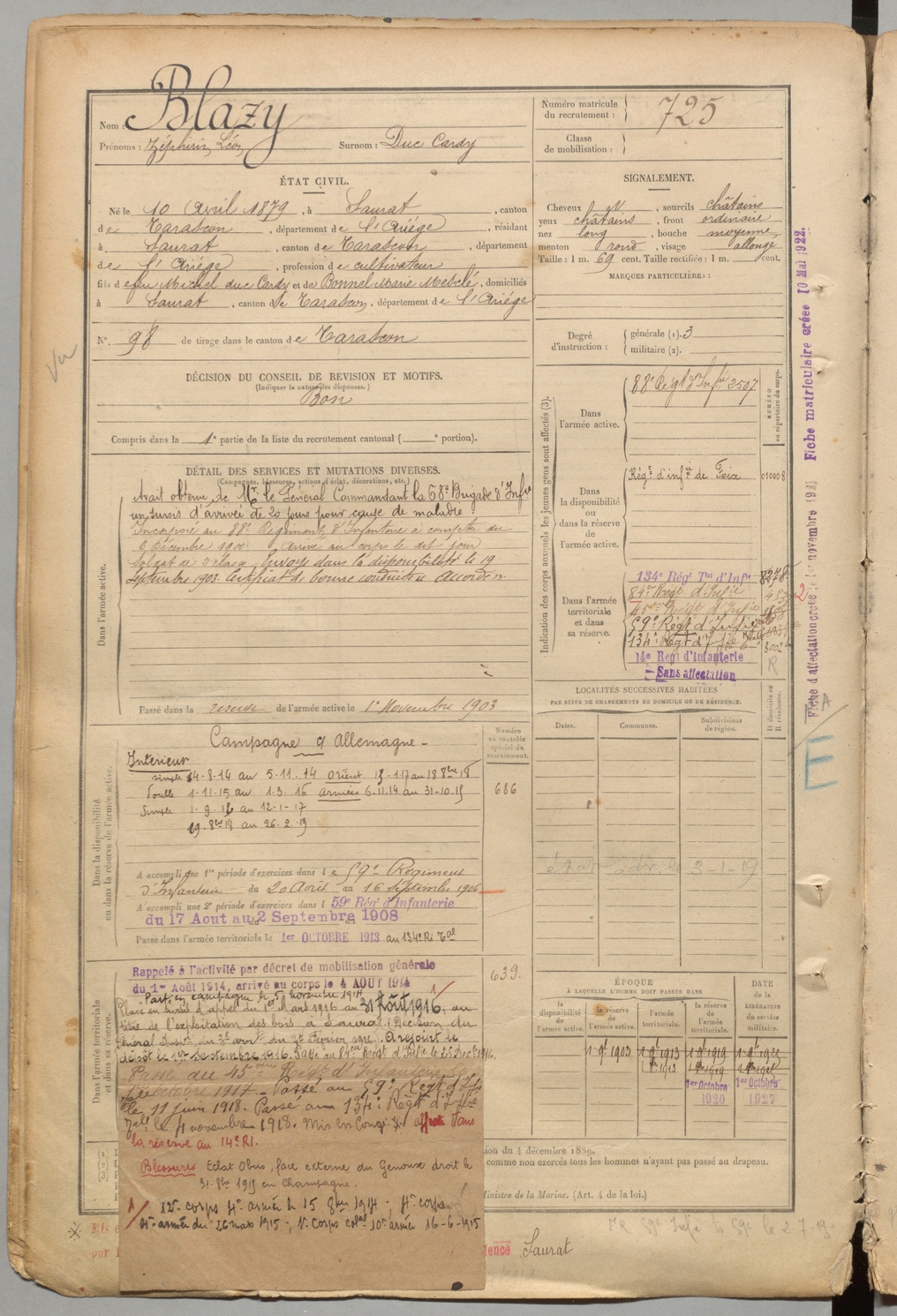 | Blazy | Zéphirin Léon dit Duc Cardy | FOIX | 1 R 457 | 1899 | Saurat | Saurat | 725 |