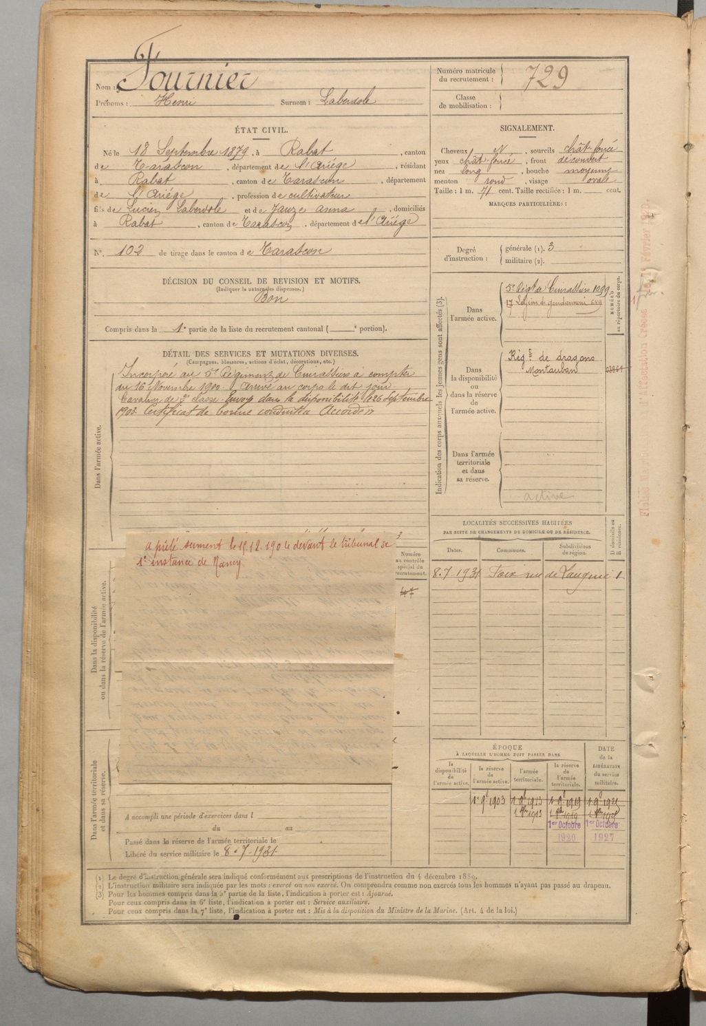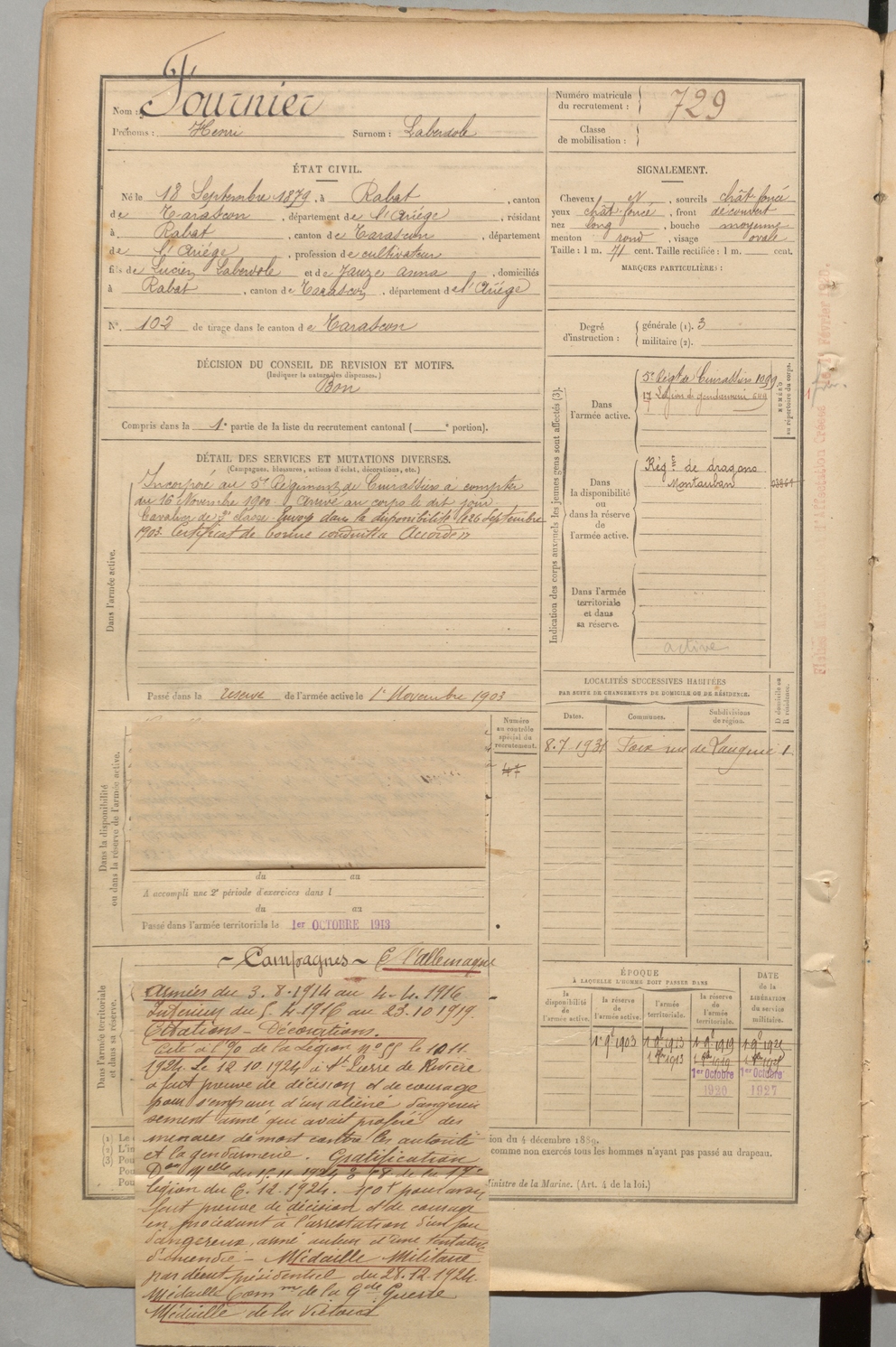 | Fournier | Henri dit Laberdole | FOIX | 1 R 457 | 1899 | Rabat-les-Trois-Seigneurs | Rabat-les-Trois-Seigneurs | 729 |