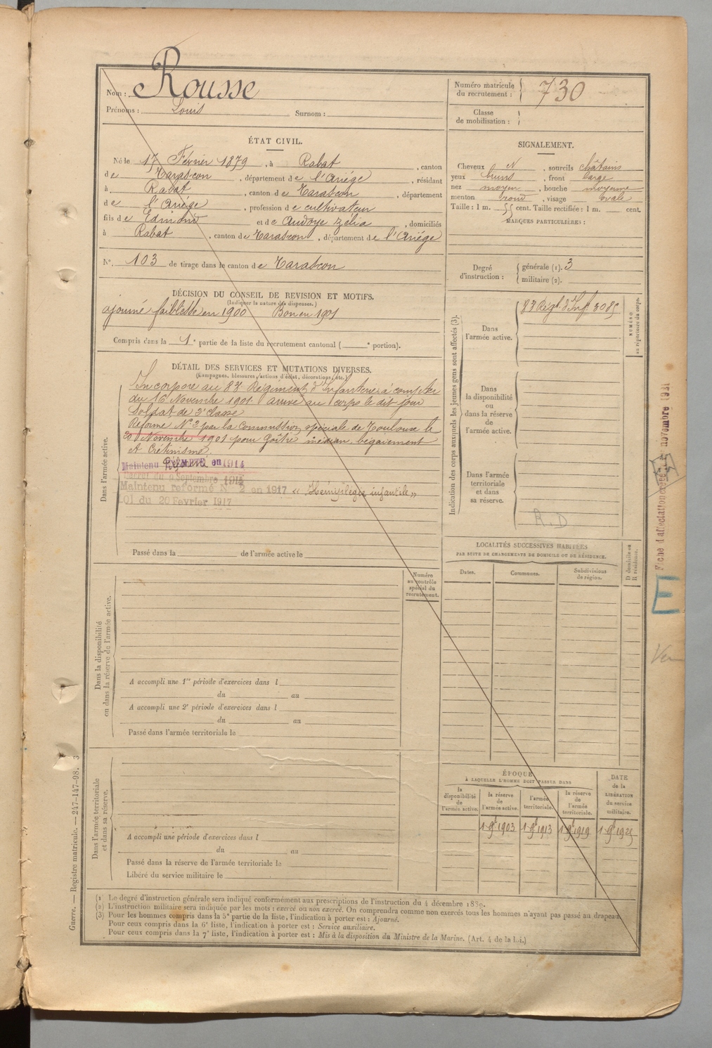 | Rousse | Louis | FOIX | 1 R 457 | 1899 | Rabat-les-Trois-Seigneurs | Rabat-les-Trois-Seigneurs | 730 |