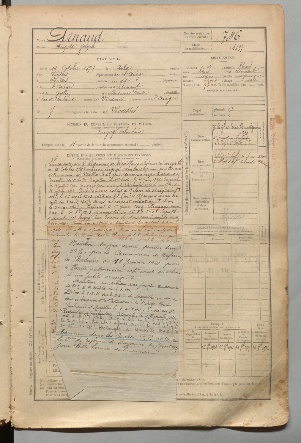 | Arnaud | Léopold Joseph | FOIX | 1 R 457 | 1899 | Artix | Varilhes | 746 |