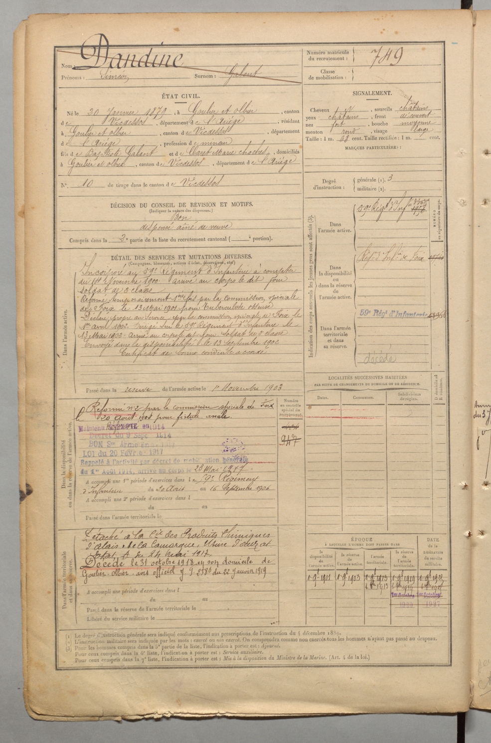 | Dandine | Siméon dit Galant | FOIX | 1 R 457 | 1899 | Goulier-Olbier | Goulier-Olbier | 749 |