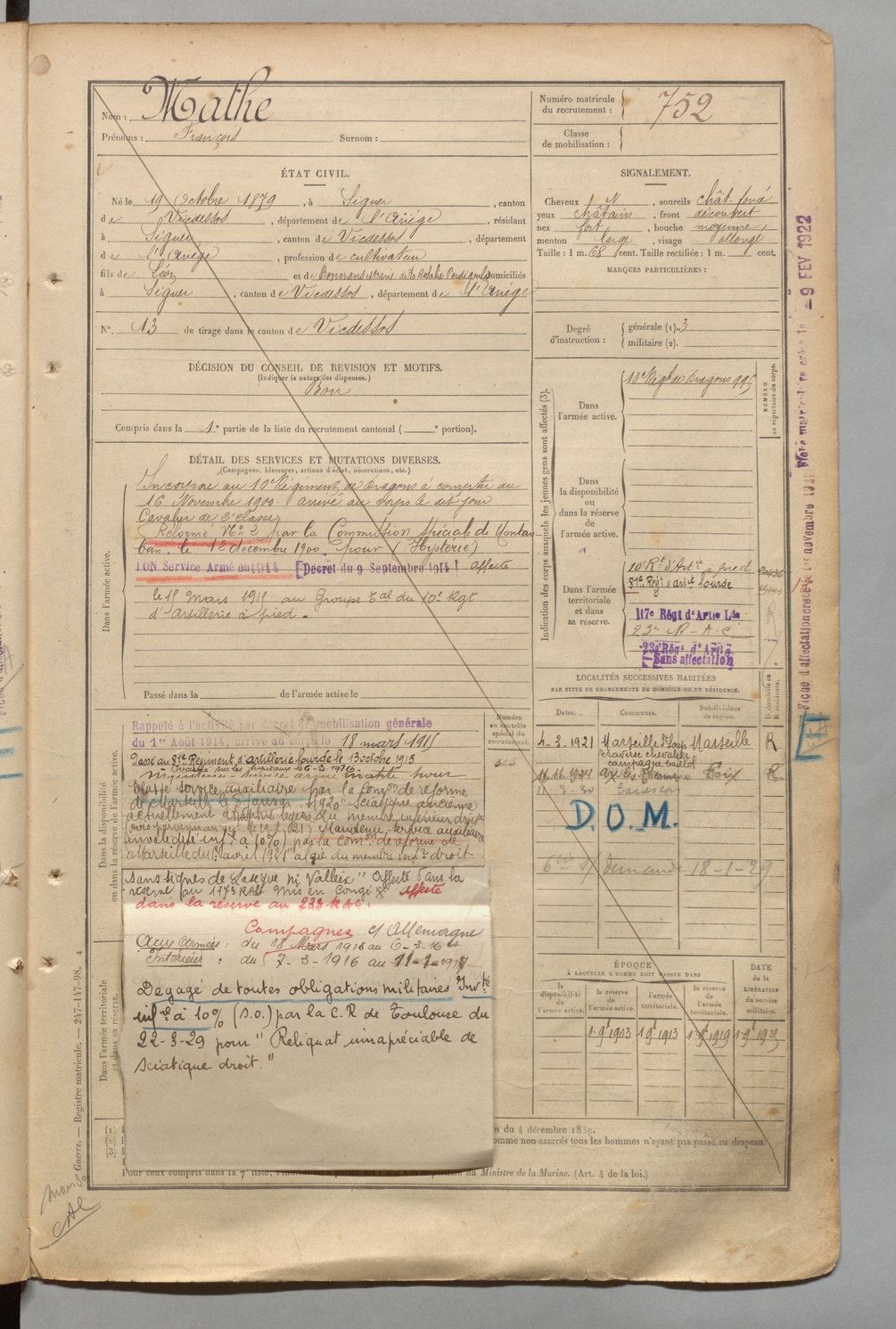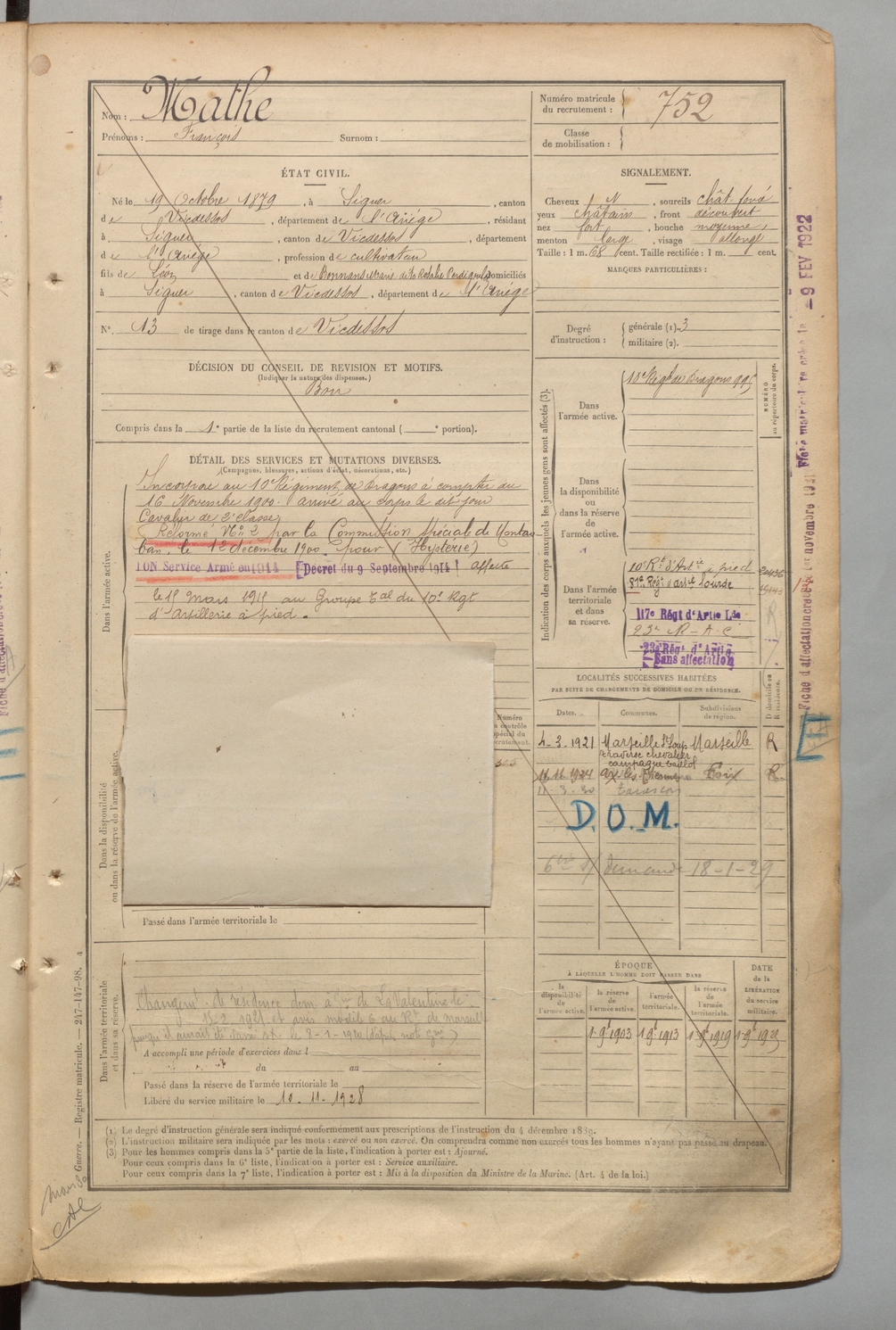 | Mathe | François | FOIX | 1 R 457 | 1899 | Siguer | Siguer | 752 |