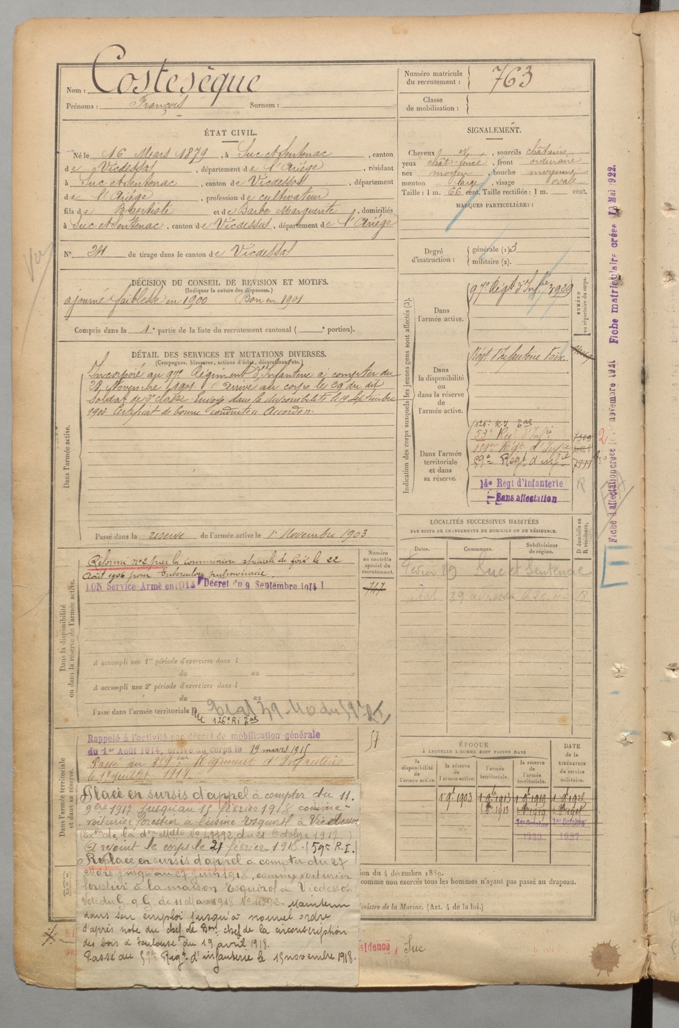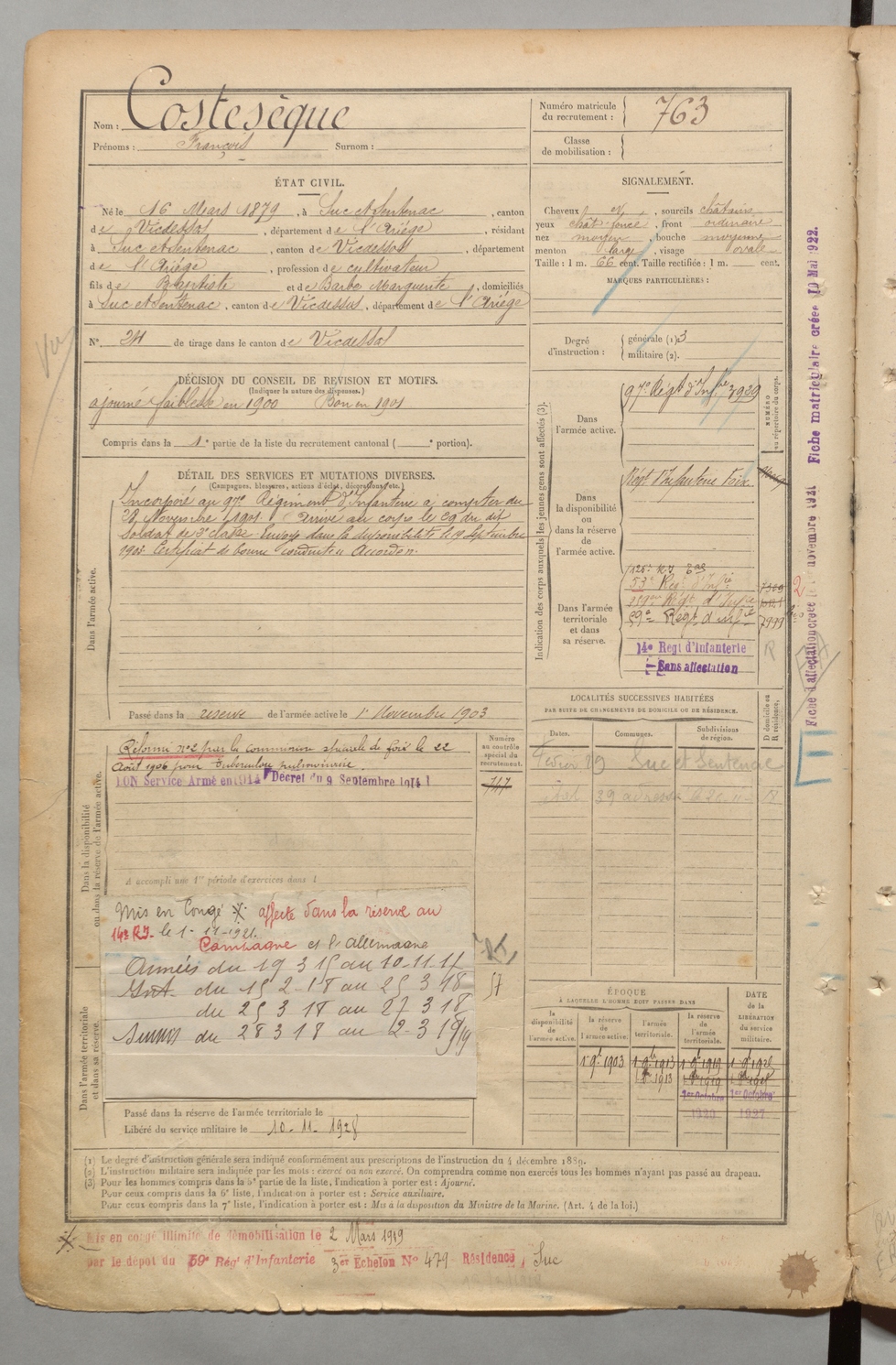 | Costesèque | François | FOIX | 1 R 457 | 1899 | Suc-et-Sentenac | Suc-et-Sentenac | 763 |