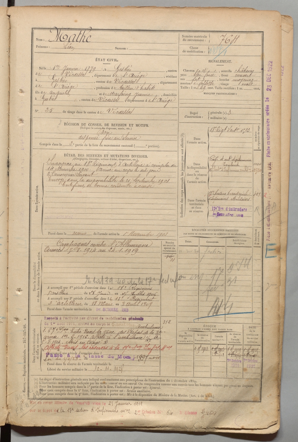 | Mathe | Léon | FOIX | 1 R 457 | 1899 | Gestiès | Gestiès | 764 |