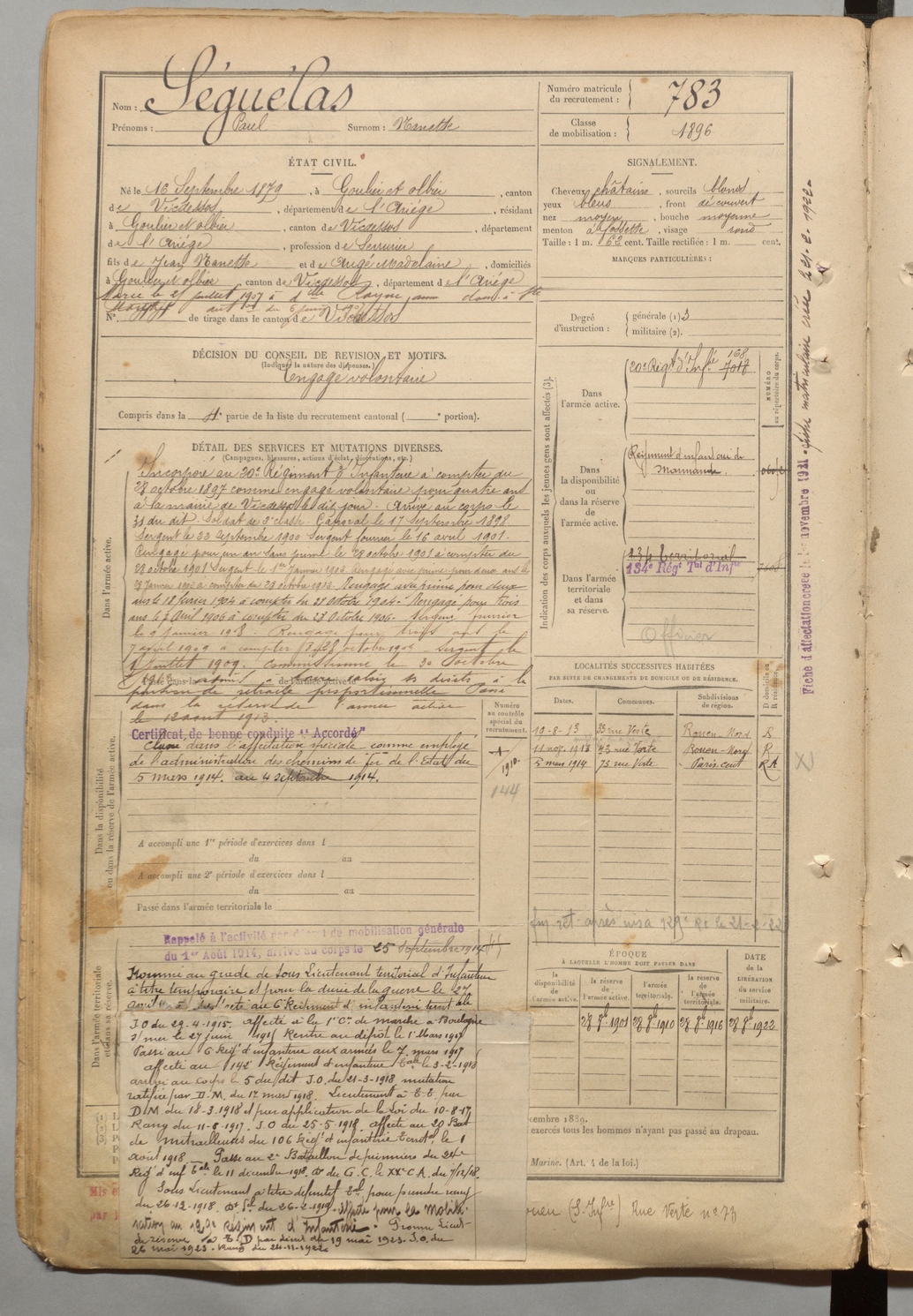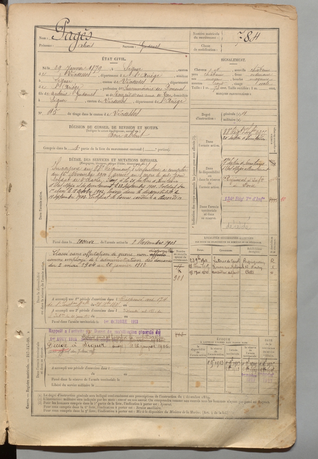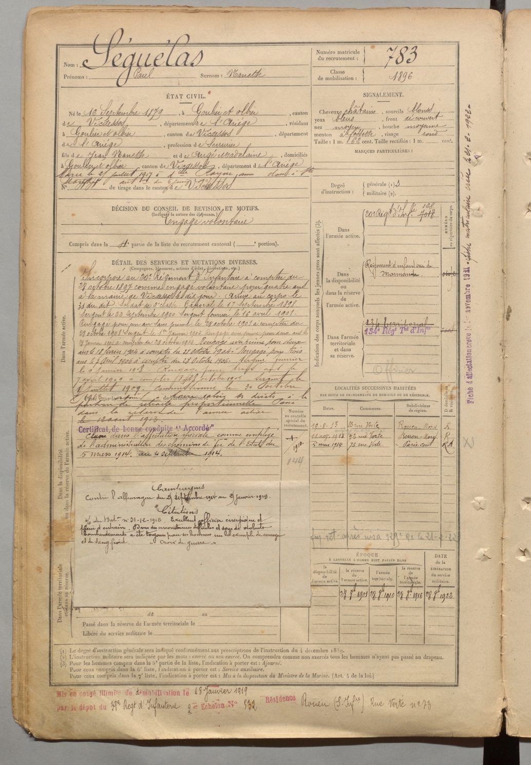 | Séguélas | Paul dit Nanette | FOIX | 1 R 457 | 1899 | Goulier-Olbier | Goulier-Olbier | 783 |