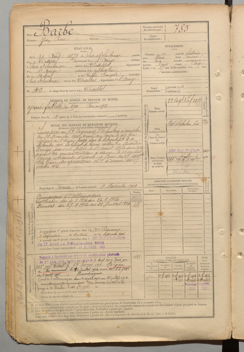 | Barbe | Jean Pierre | FOIX | 1 R 457 | 1899 | Suc-et-Sentenac | Suc-et-Sentenac | 785 |