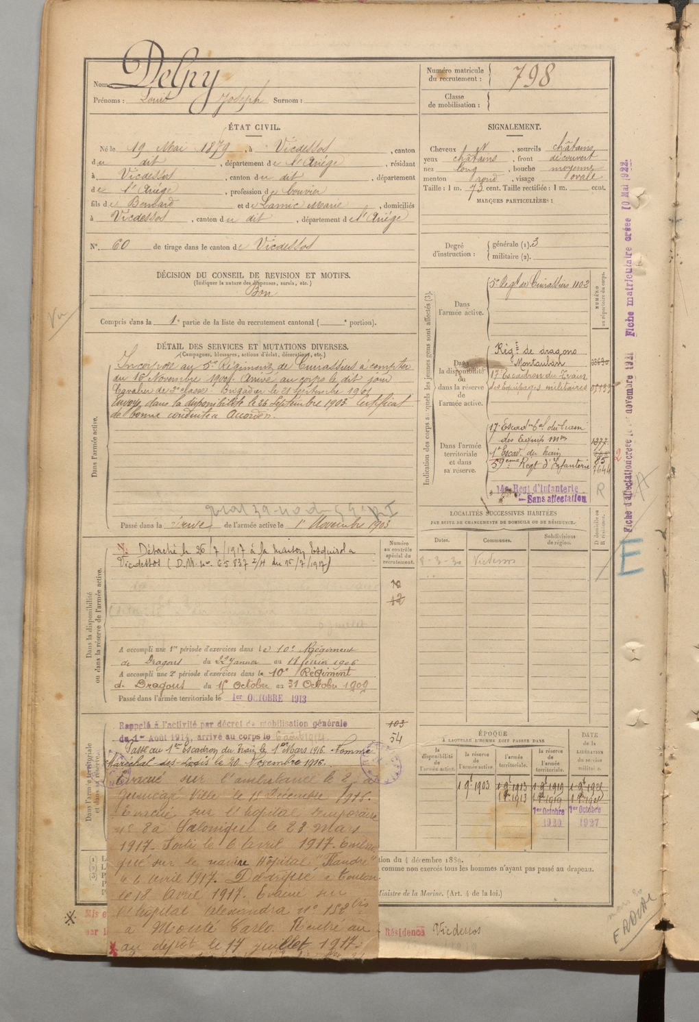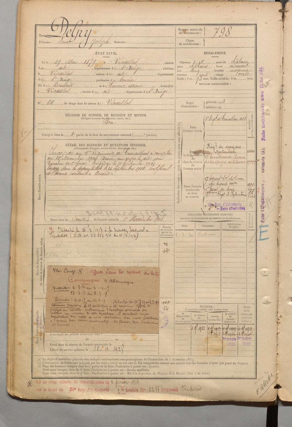 | Delpy | Louis Joseph | FOIX | 1 R 457 | 1899 | Vicdessos | Vicdessos | 798 |