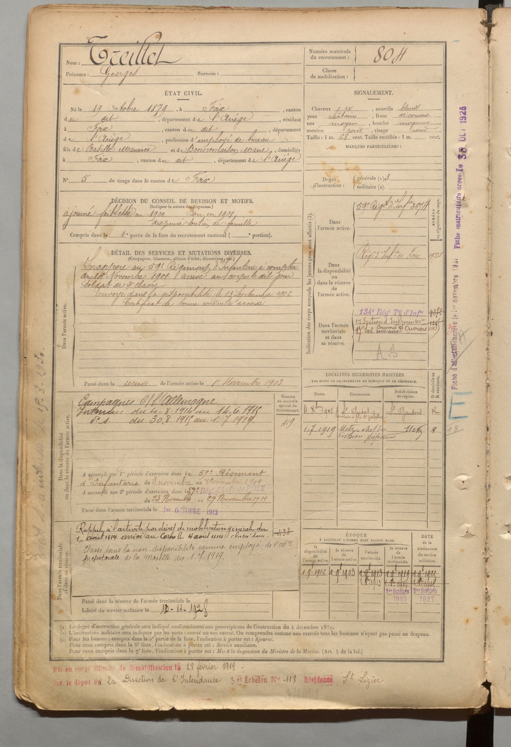 | Treillet | Georges | FOIX | 1 R 457 | 1899 | Foix | Foix | 804 |