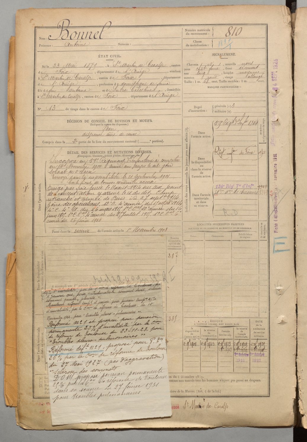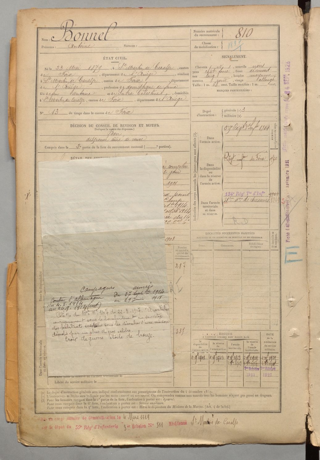 | Bonnel | Antoine | FOIX | 1 R 457 | 1899 | Saint-Martin-de-Caralp | Saint-Martin-de-Caralp | 810 |