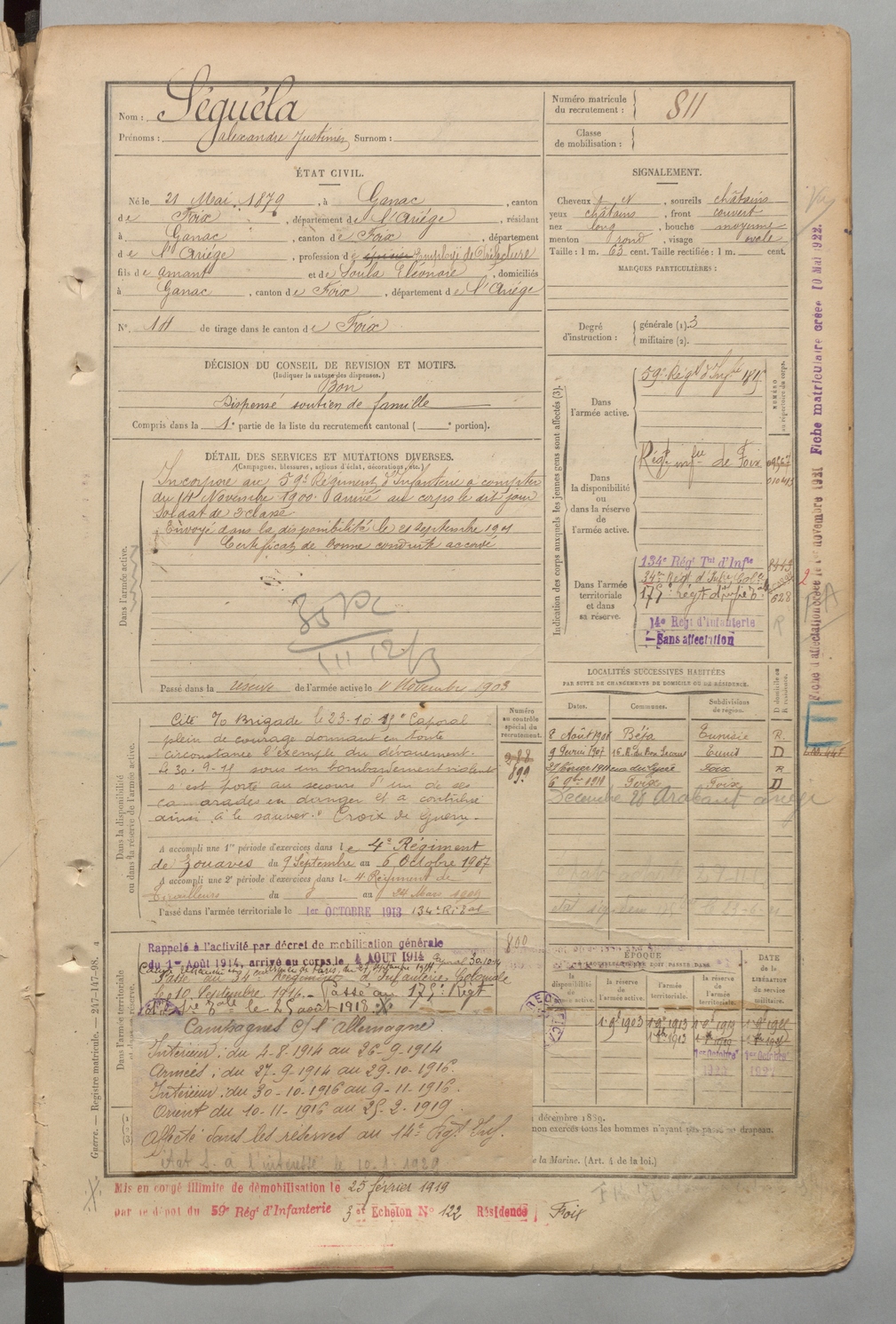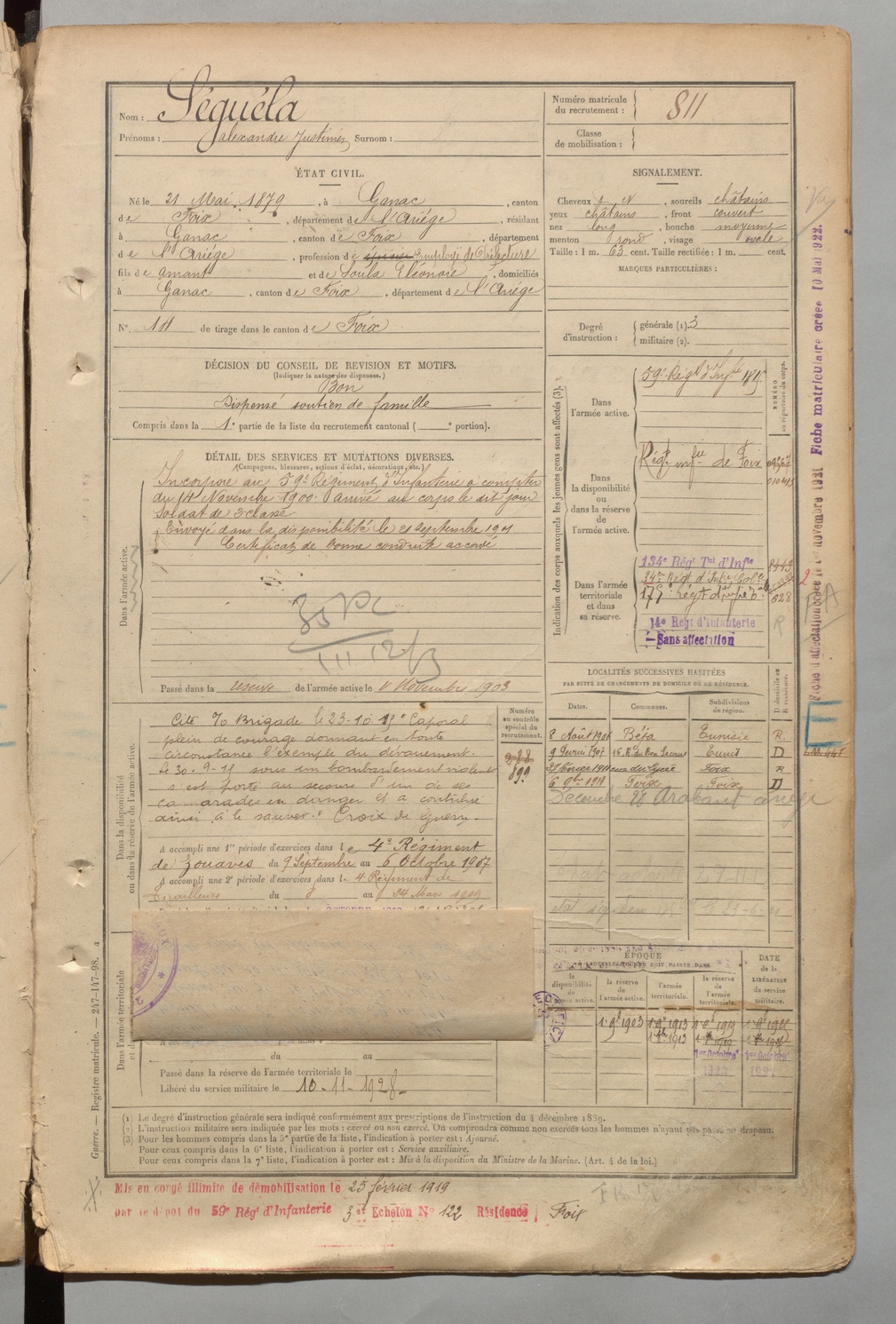 | Séguéla | Alexandre Justinien | FOIX | 1 R 457 | 1899 | Ganac | Ganac | 811 |