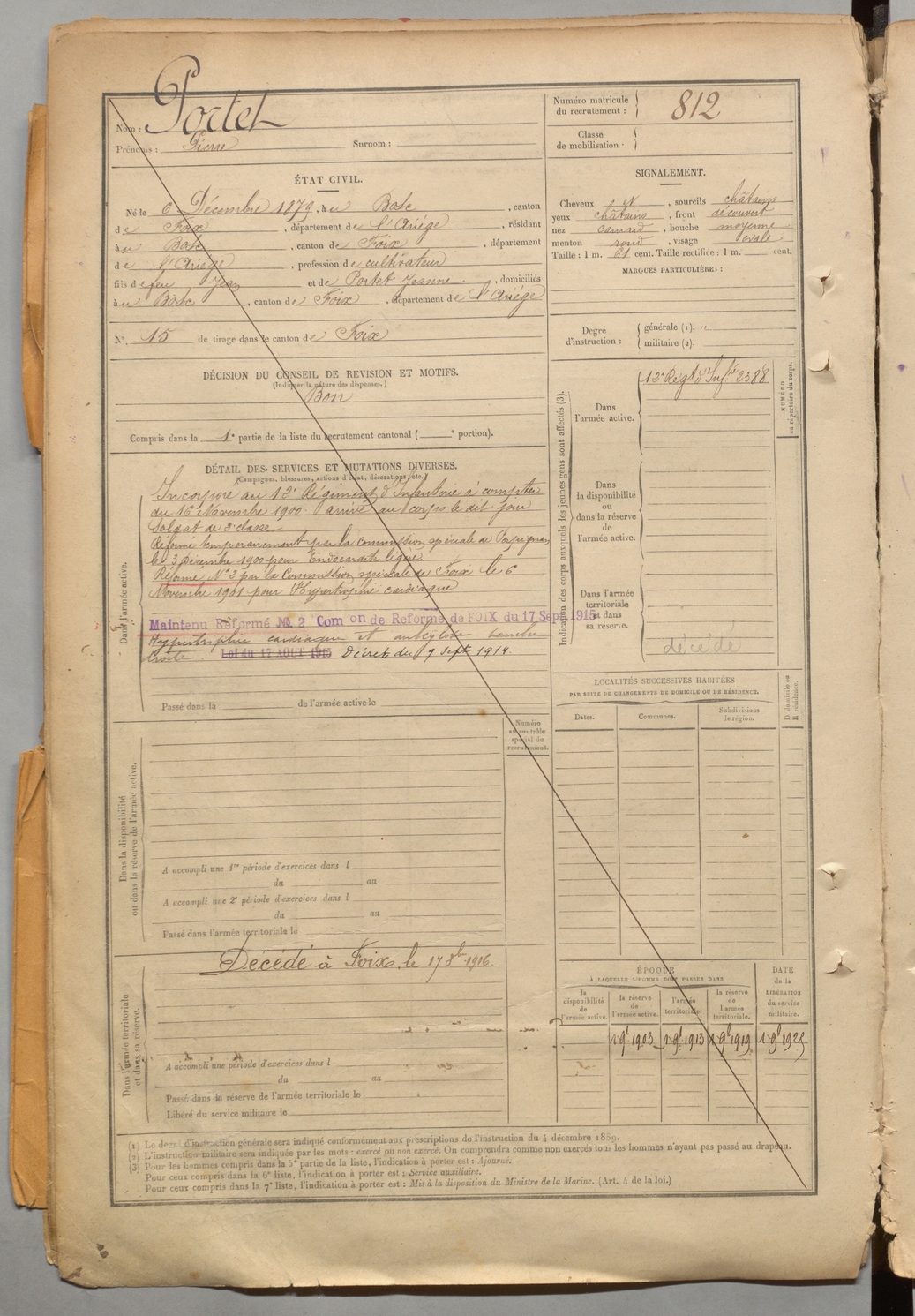 | Portet | Pierre | FOIX | 1 R 457 | 1899 | Bosc (Le) | Bosc (Le) | 812 |
