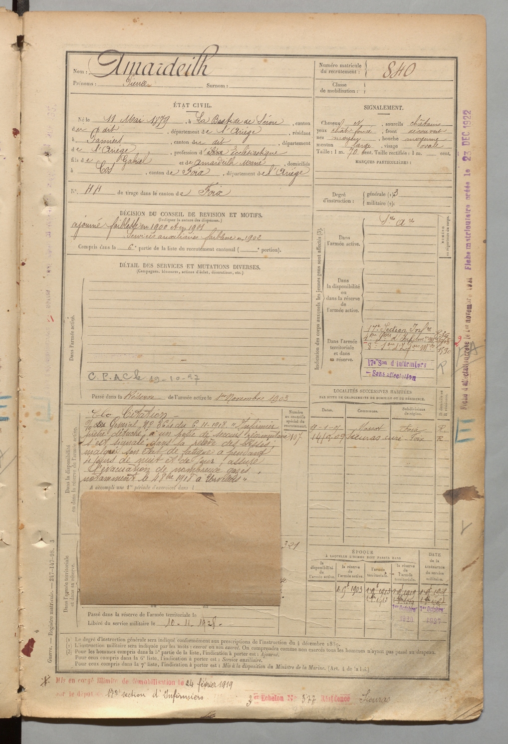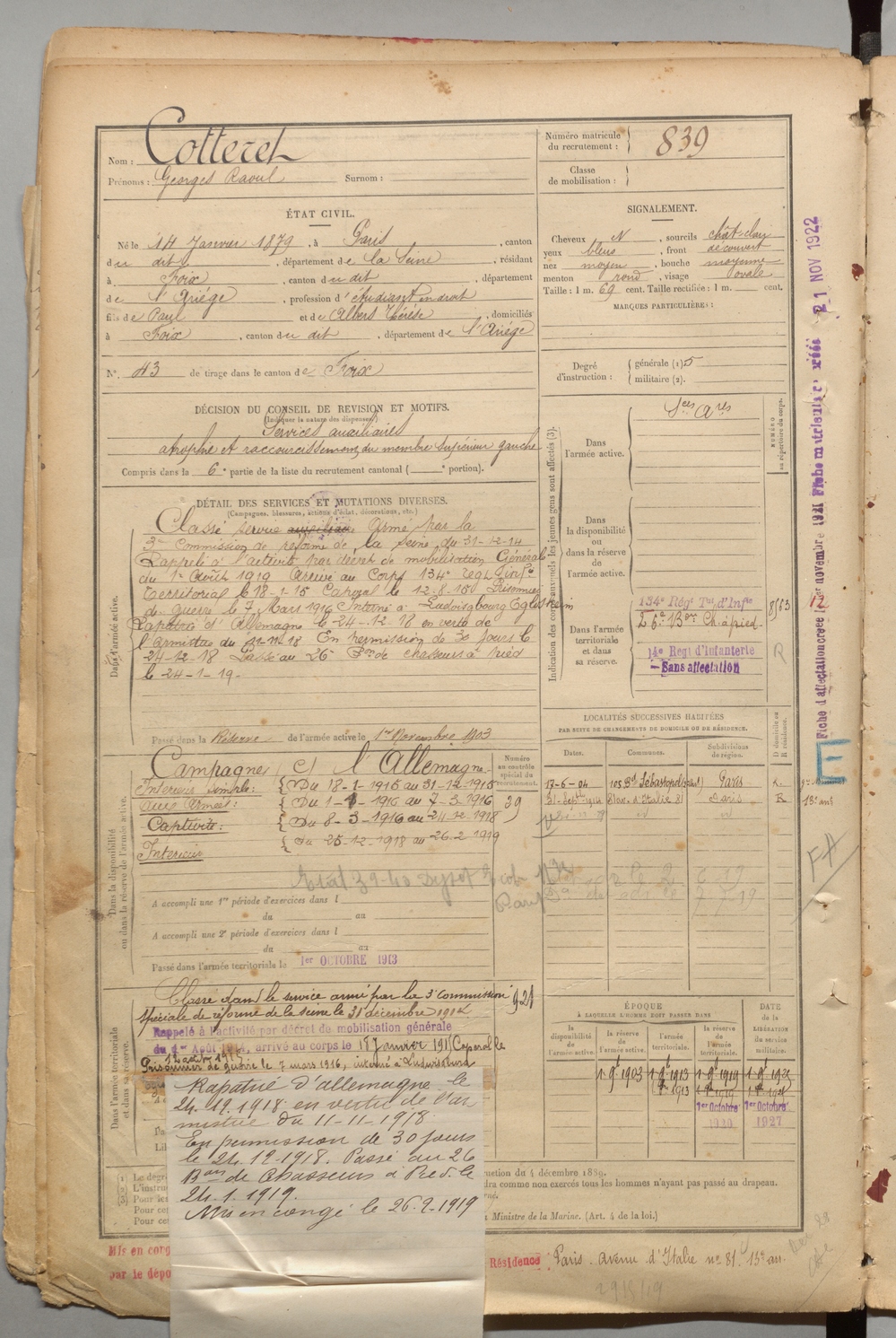 | Cotteret | Georges Raoul | FOIX | 1 R 457 | 1899 | Paris | Foix | 839 |