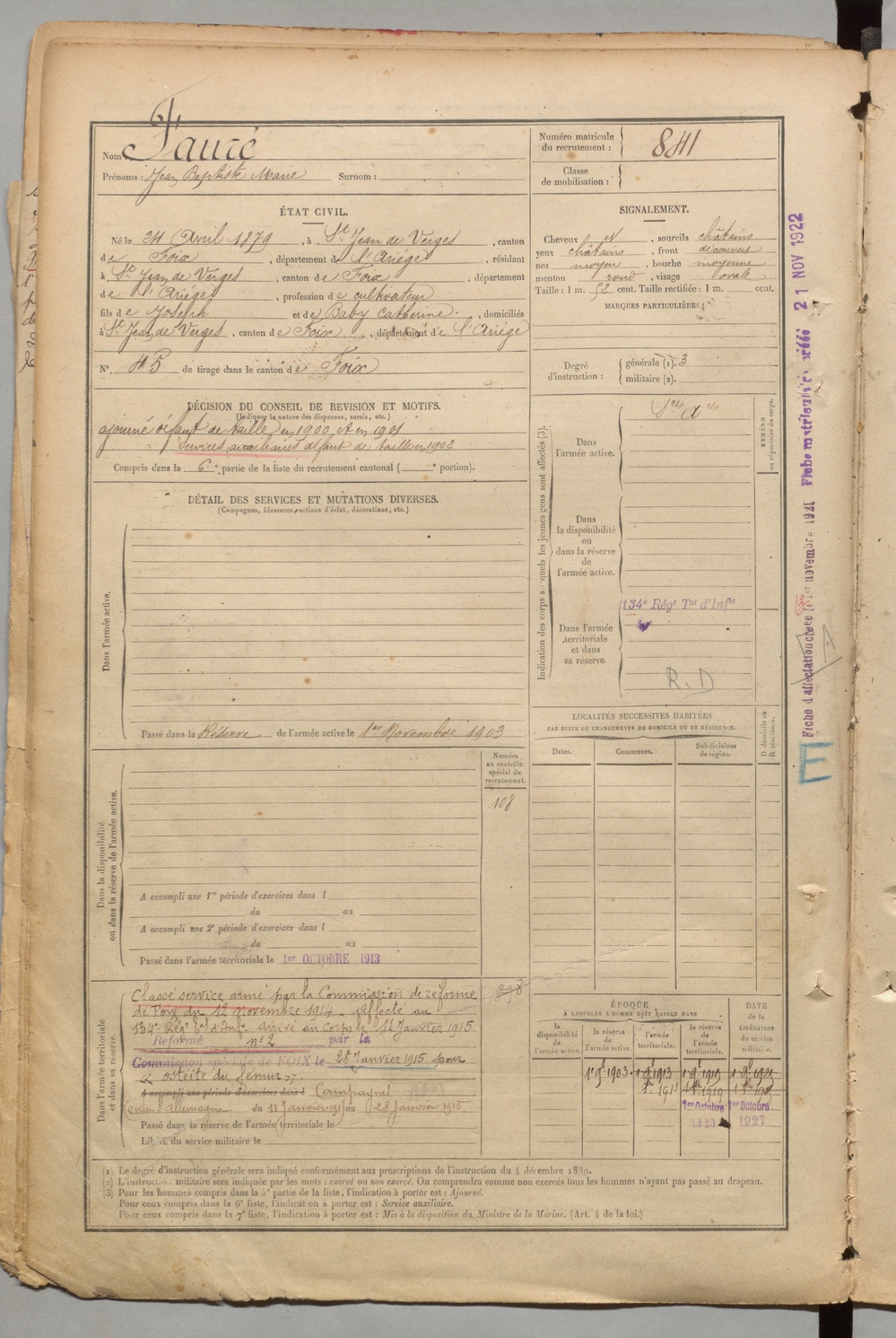 | Fauré | Jean Baptiste Marie | FOIX | 1 R 457 | 1899 | Saint-Jean-de-Verges | Saint-Jean-de-Verges | 841 |