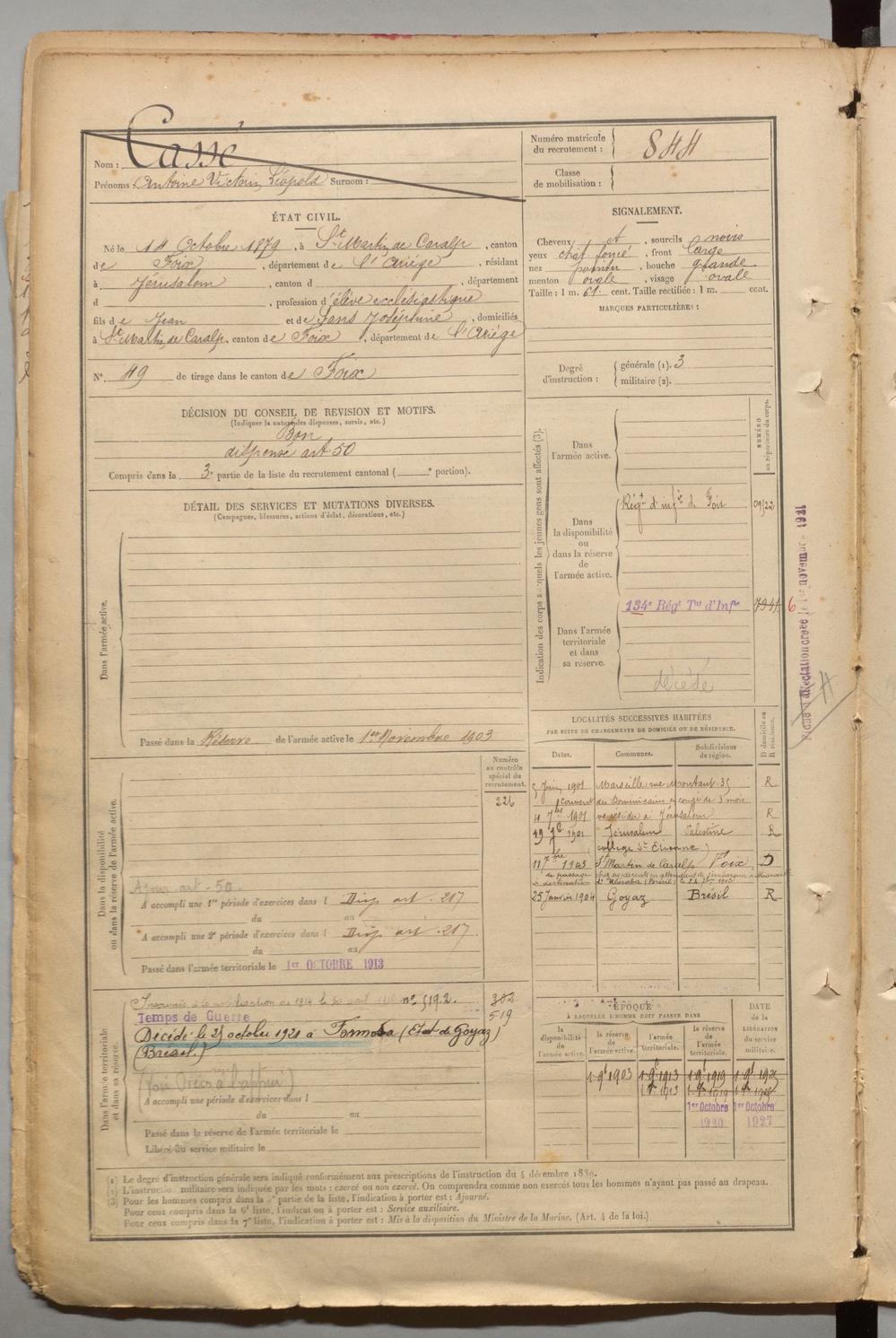 | Cassé | Antoine Victorin Léopold | FOIX | 1 R 457 | 1899 | Saint-Martin-de-Caralp | Jérusalem | 844 |