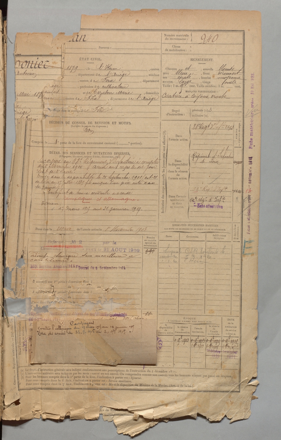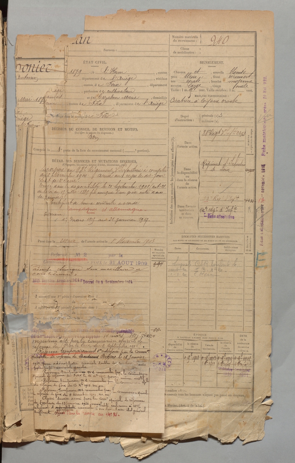 | Roussel | Martial | FOIX | 1 R 457 | 1899 | Freychenet | Freychenet | 939 |