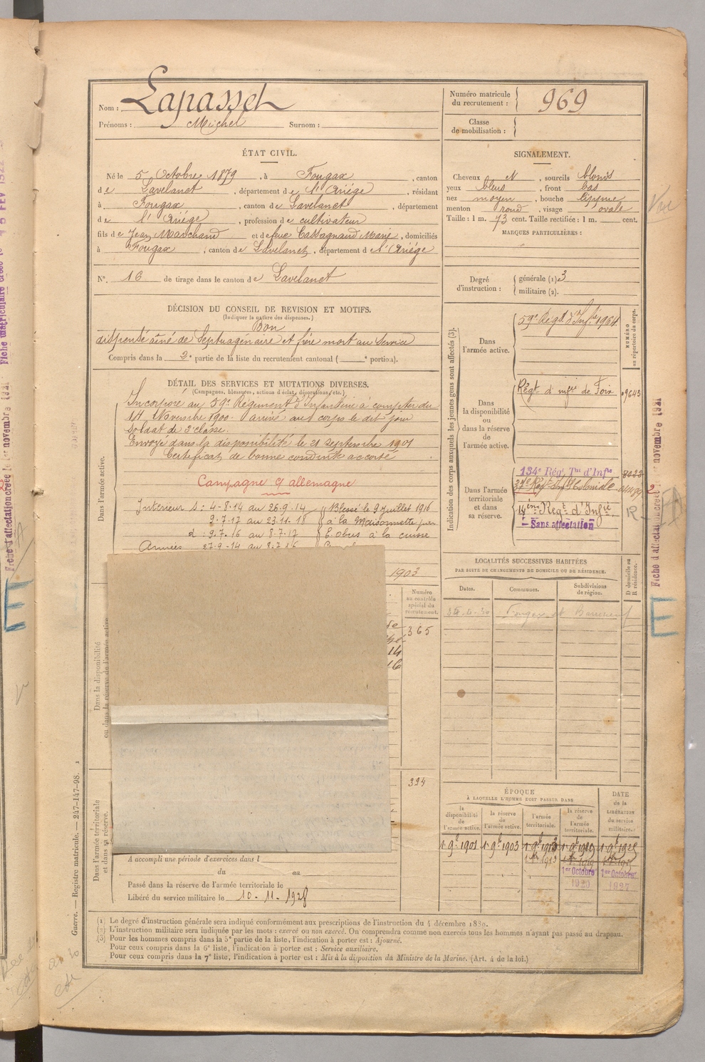 | Lapasset | Michel | FOIX | 1 R 458 | 1899 | Fougax-et-Barrineuf | Fougax-et-Barrineuf | 969 |