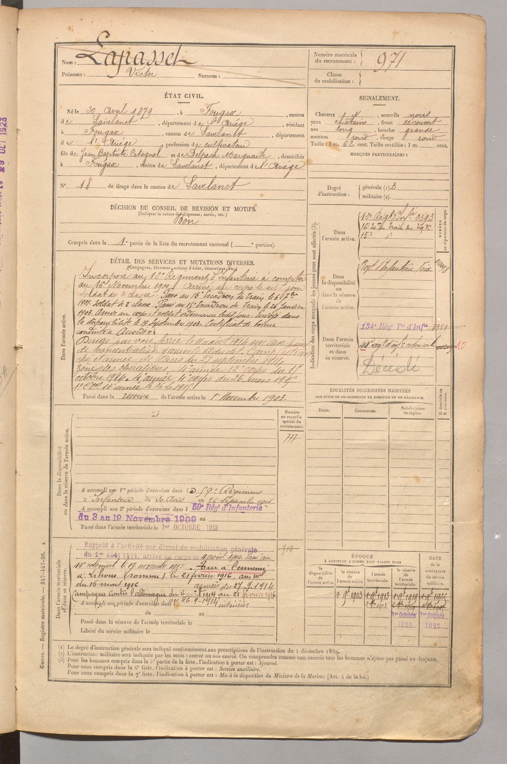 | Lapasset | Victor | FOIX | 1 R 458 | 1899 | Fougax-et-Barrineuf | Fougax-et-Barrineuf | 971 |