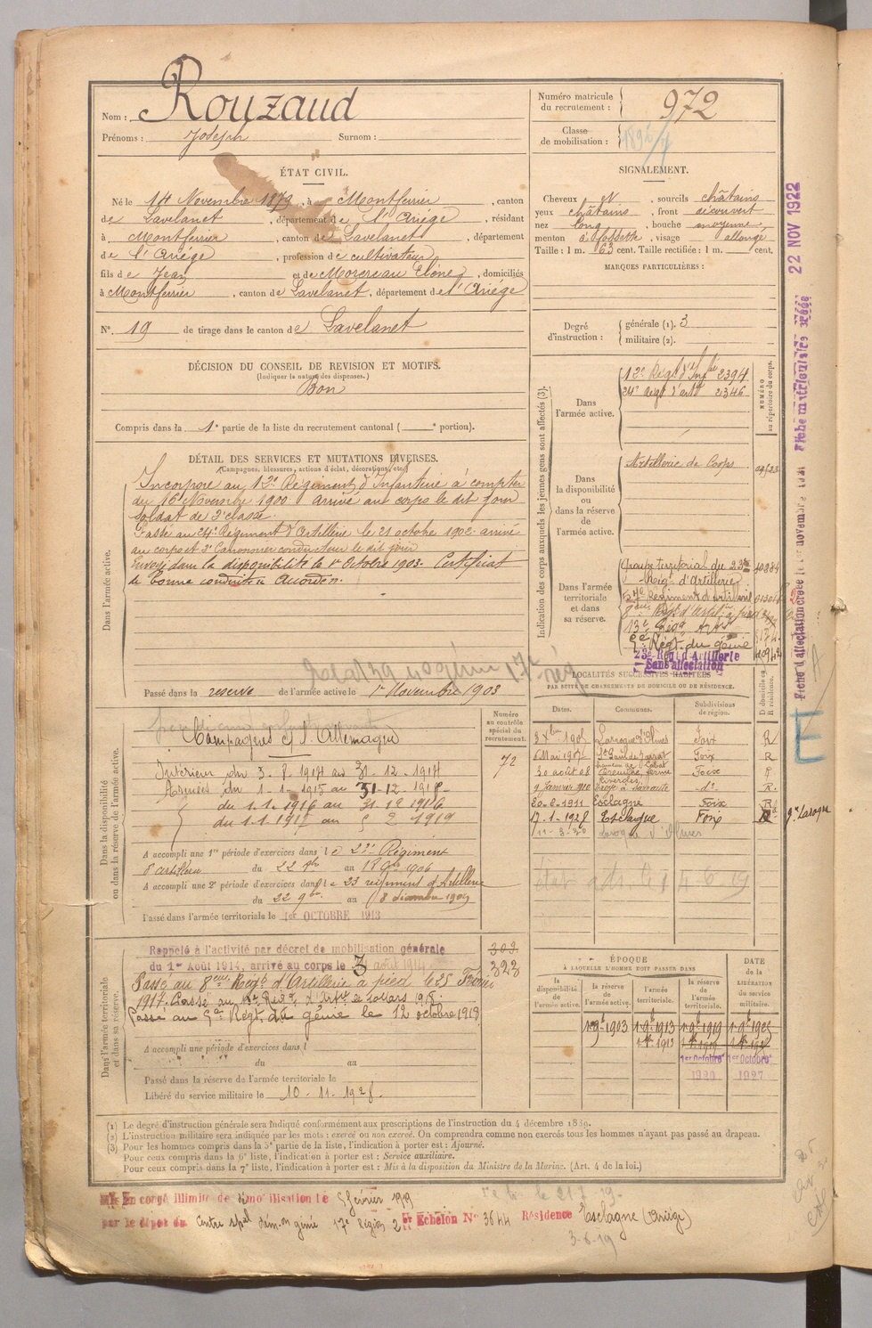 | Rouzaud | Joseph | FOIX | 1 R 458 | 1899 | Montferrier | Montferrier | 972 |