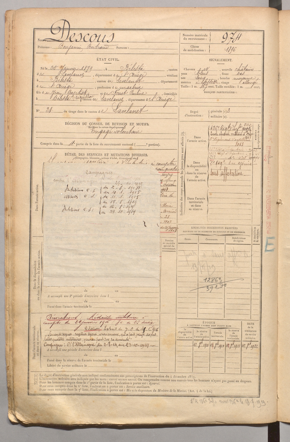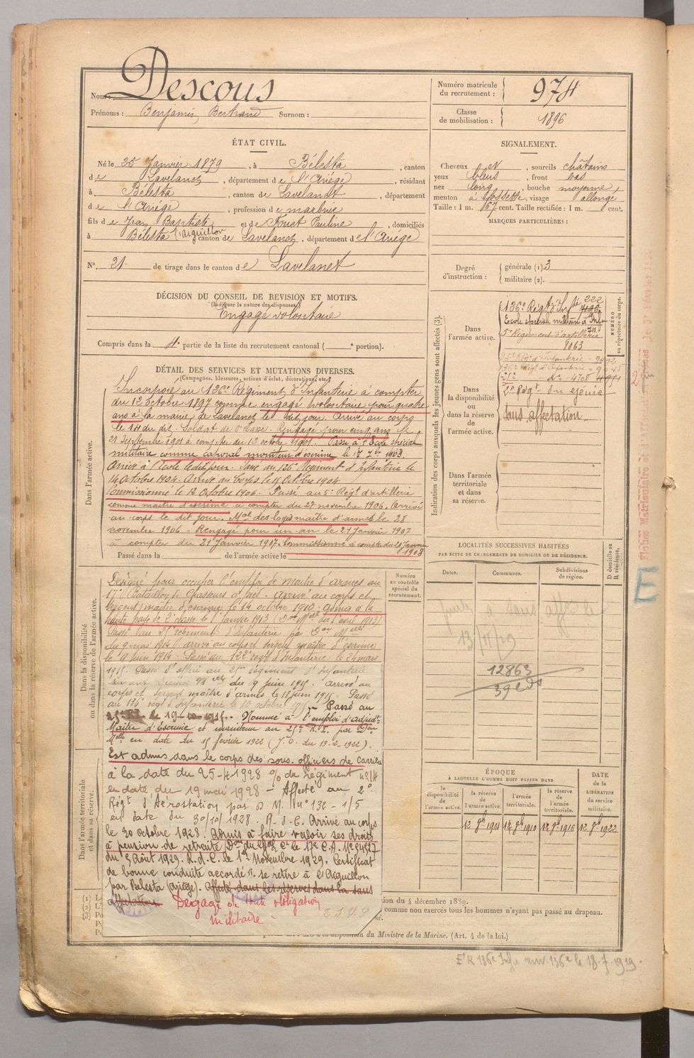 | Descous | Benjamin Bertrand | FOIX | 1 R 458 | 1899 | Bélesta | Bélesta | 974 |
