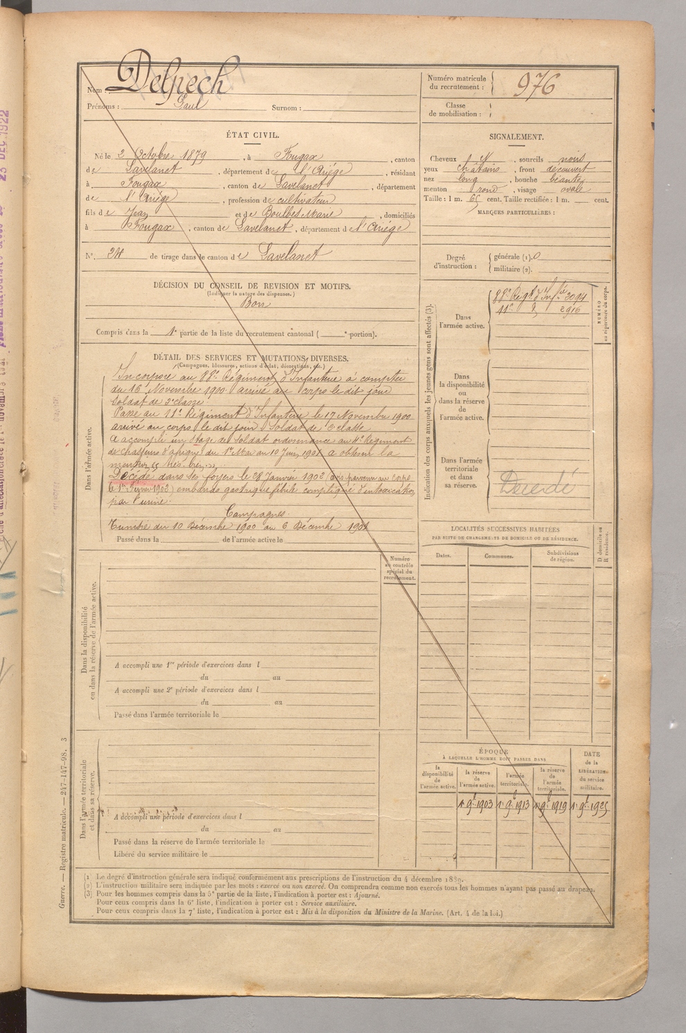 | Delpech | Paul | FOIX | 1 R 458 | 1899 | Fougax-et-Barrineuf | Fougax-et-Barrineuf | 976 |
