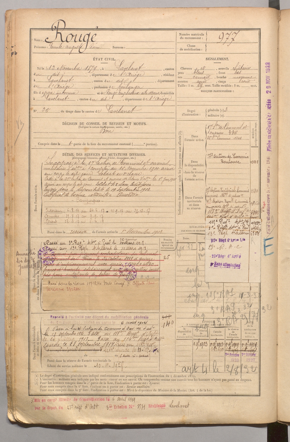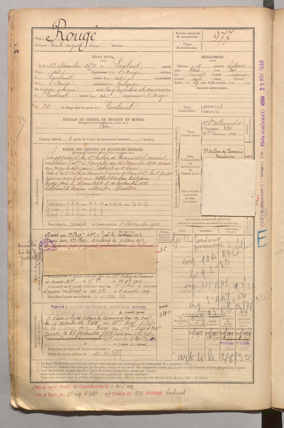 | Rougé | Emile Auguste Rémi | FOIX | 1 R 458 | 1899 | Lavelanet | Lavelanet | 977 |
