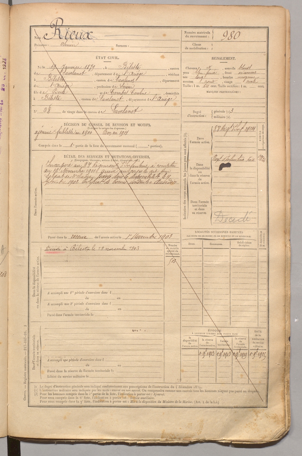 | Rieux | Osmin | FOIX | 1 R 458 | 1899 | Bélesta | Bélesta | 980 |