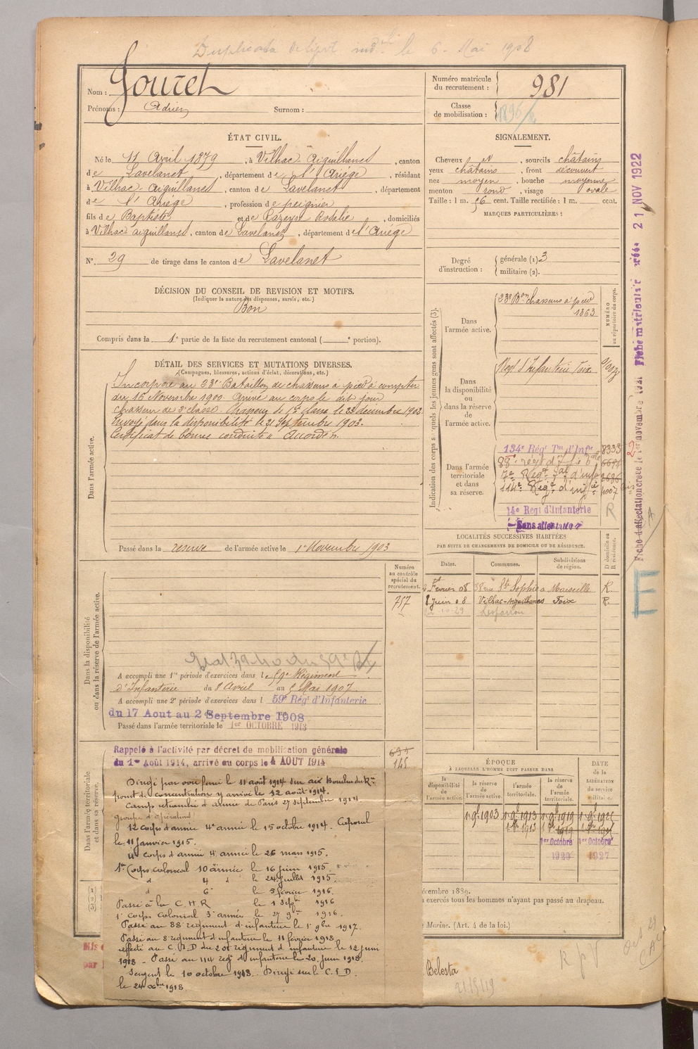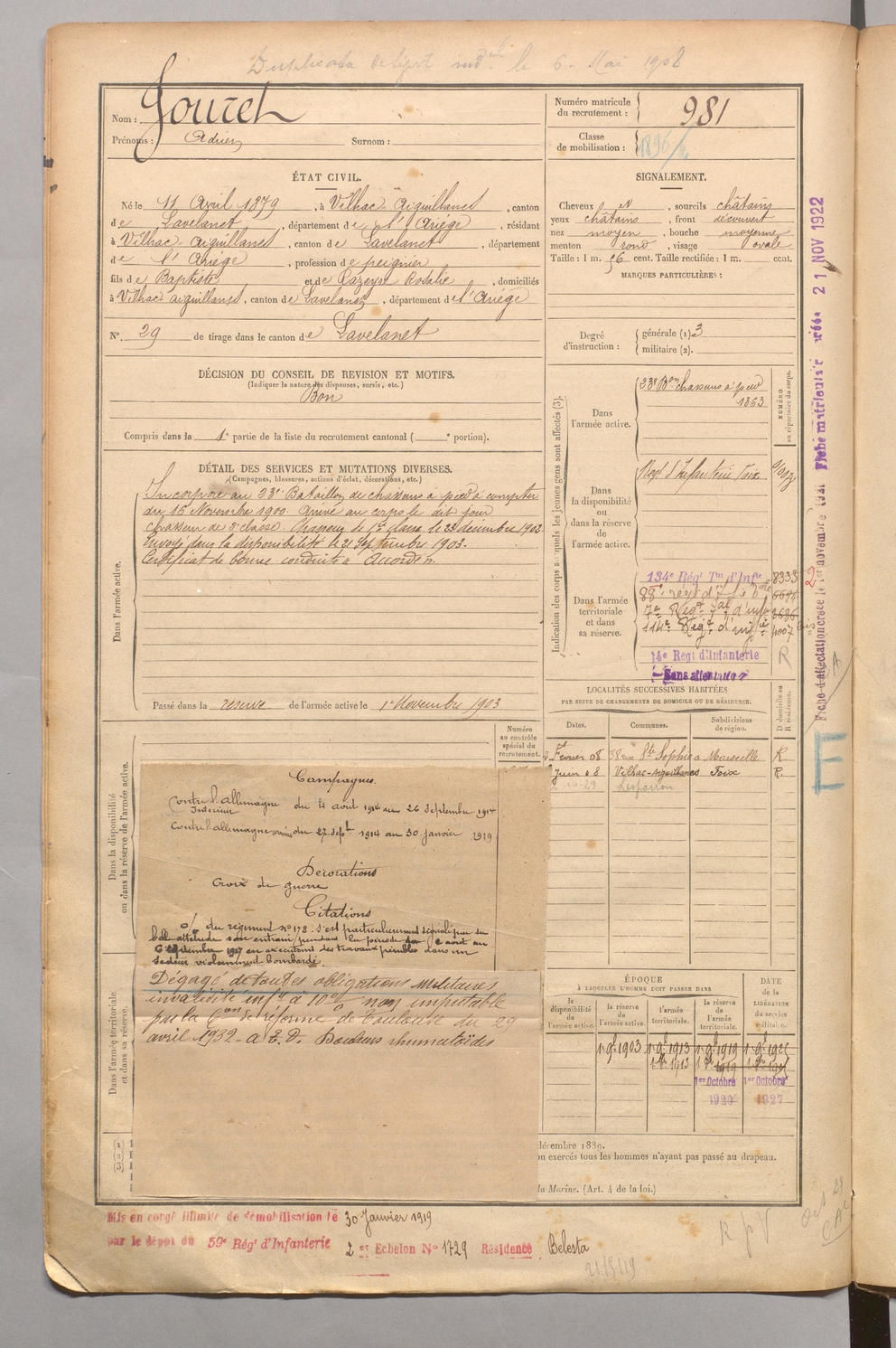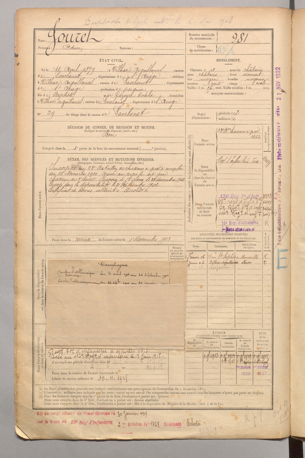 | Jouret | Adrien | FOIX | 1 R 458 | 1899 | Vilhac-Aiguillanes | Vilhac-Aiguillanes | 981 |