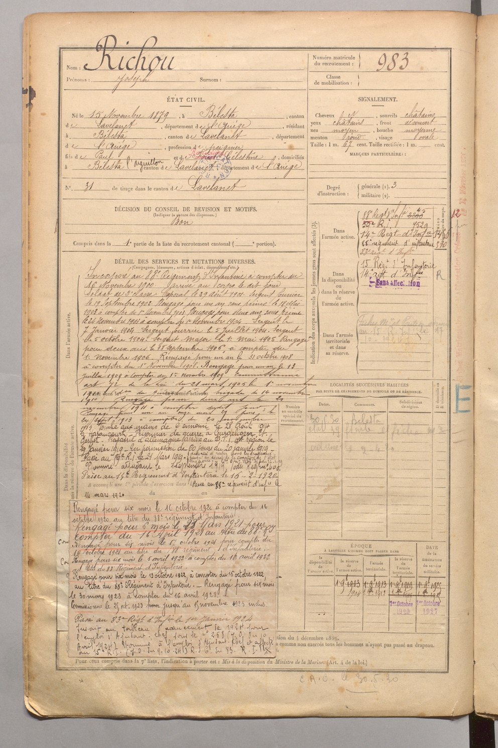 | Richou | Joseph | FOIX | 1 R 458 | 1899 | Bélesta | Bélesta | 983 |
