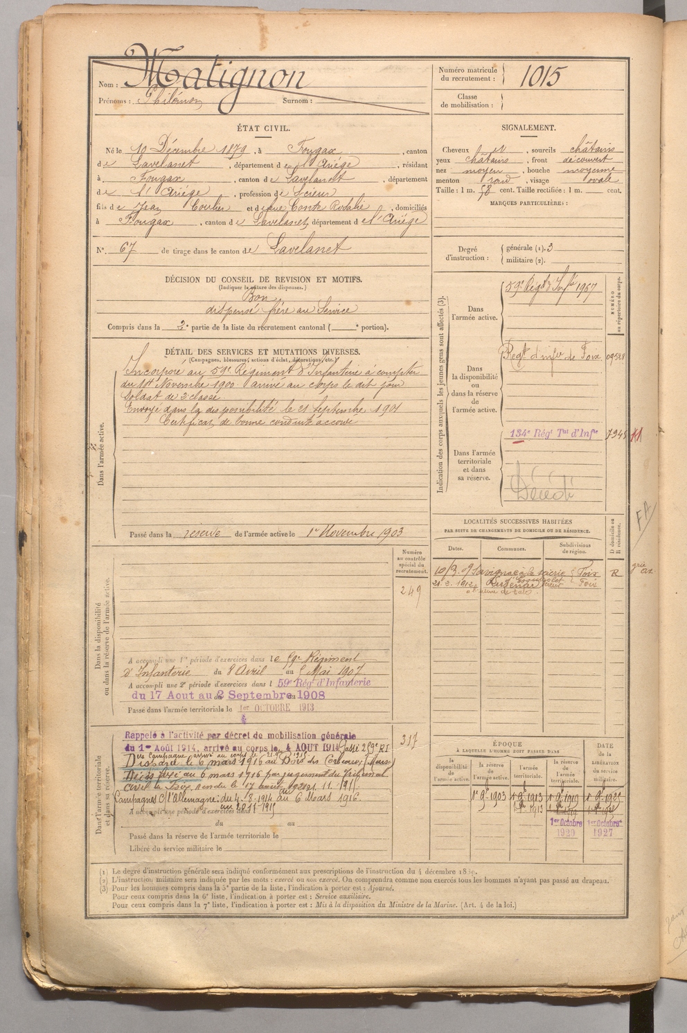 | Matignon | Philémon | FOIX | 1 R 458 | 1899 | Fougax-et-Barrineuf | Fougax-et-Barrineuf | 1015 |