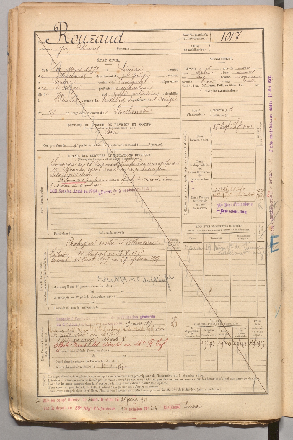 | Rouzaud | Jean Clément | FOIX | 1 R 458 | 1899 | Lieurac | Lieurac | 1017 |