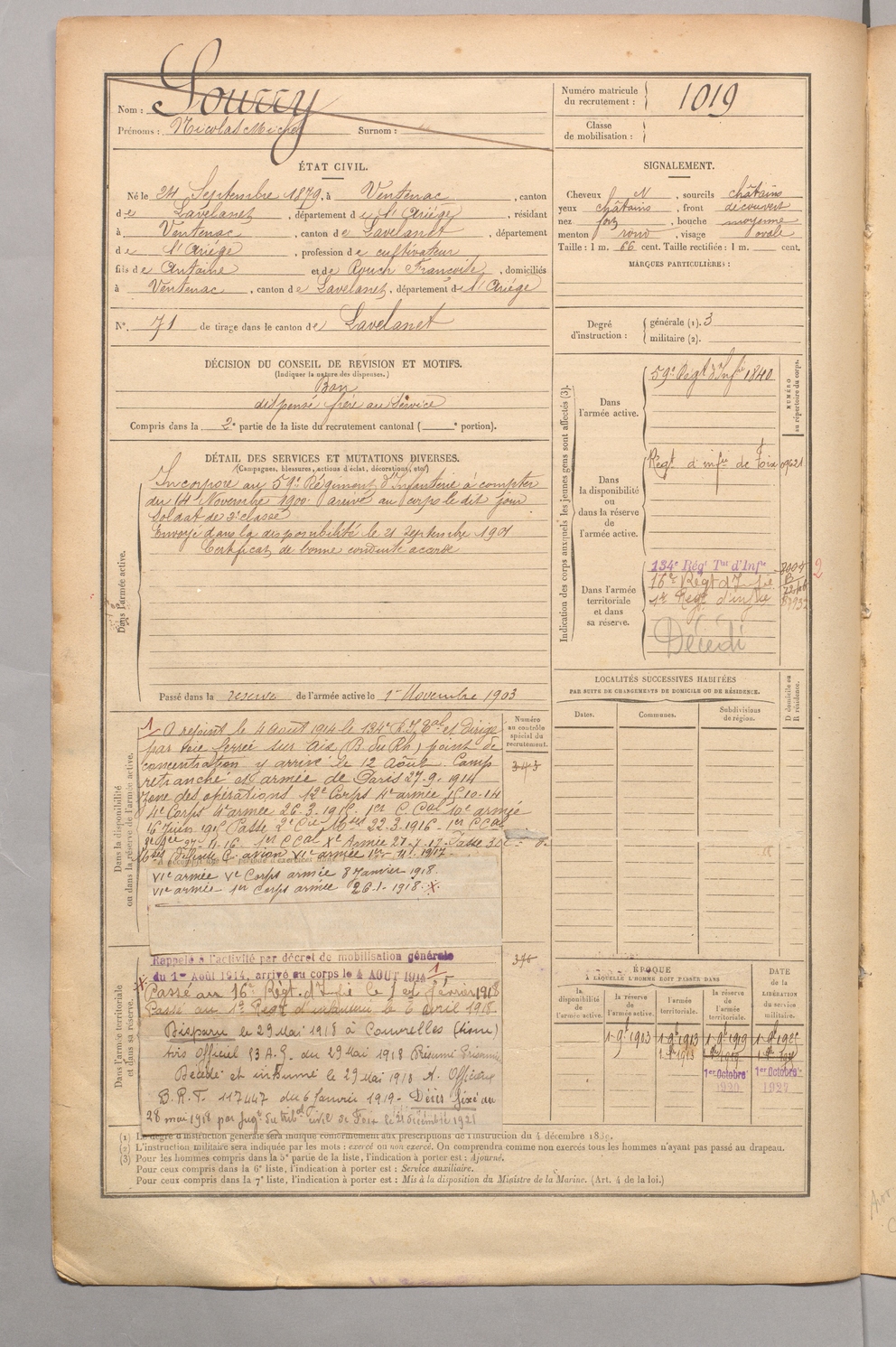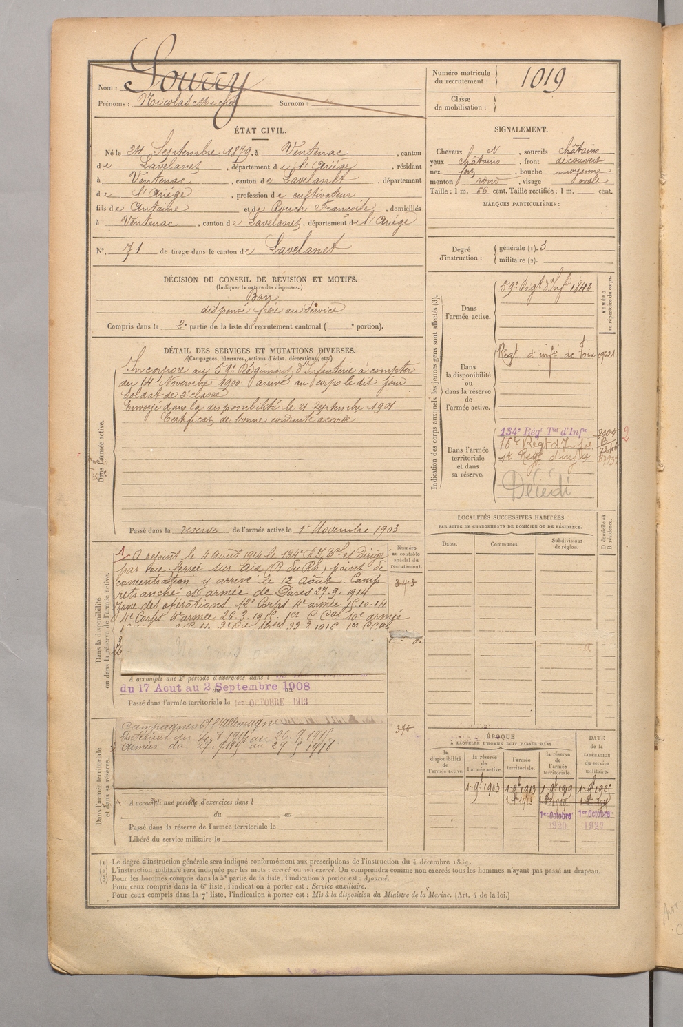 | Sourry | Nicolas Michel | FOIX | 1 R 458 | 1899 | Ventenac | Ventenac | 1019 |