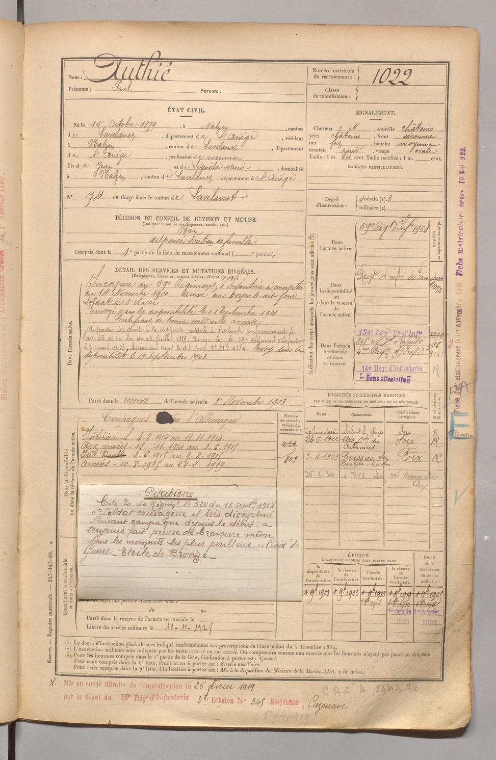 | Authié | Paul | FOIX | 1 R 458 | 1899 | Nalzen | Nalzen | 1022 |
